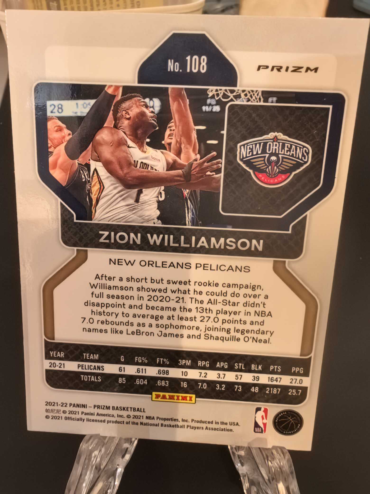 2021-22 Panini Prizm Zion Williamson 鹈鹕锡安威廉姆斯银折,卡品如图,收藏佳品,拍下后1-3天发货