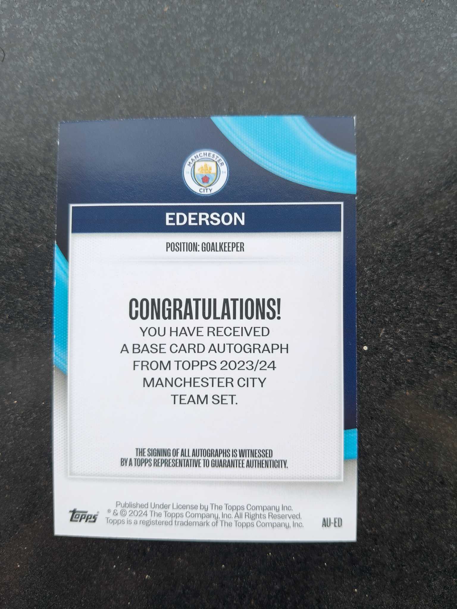 2024 Topps team set Ederson 曼城队盒 门将 埃德松 签字