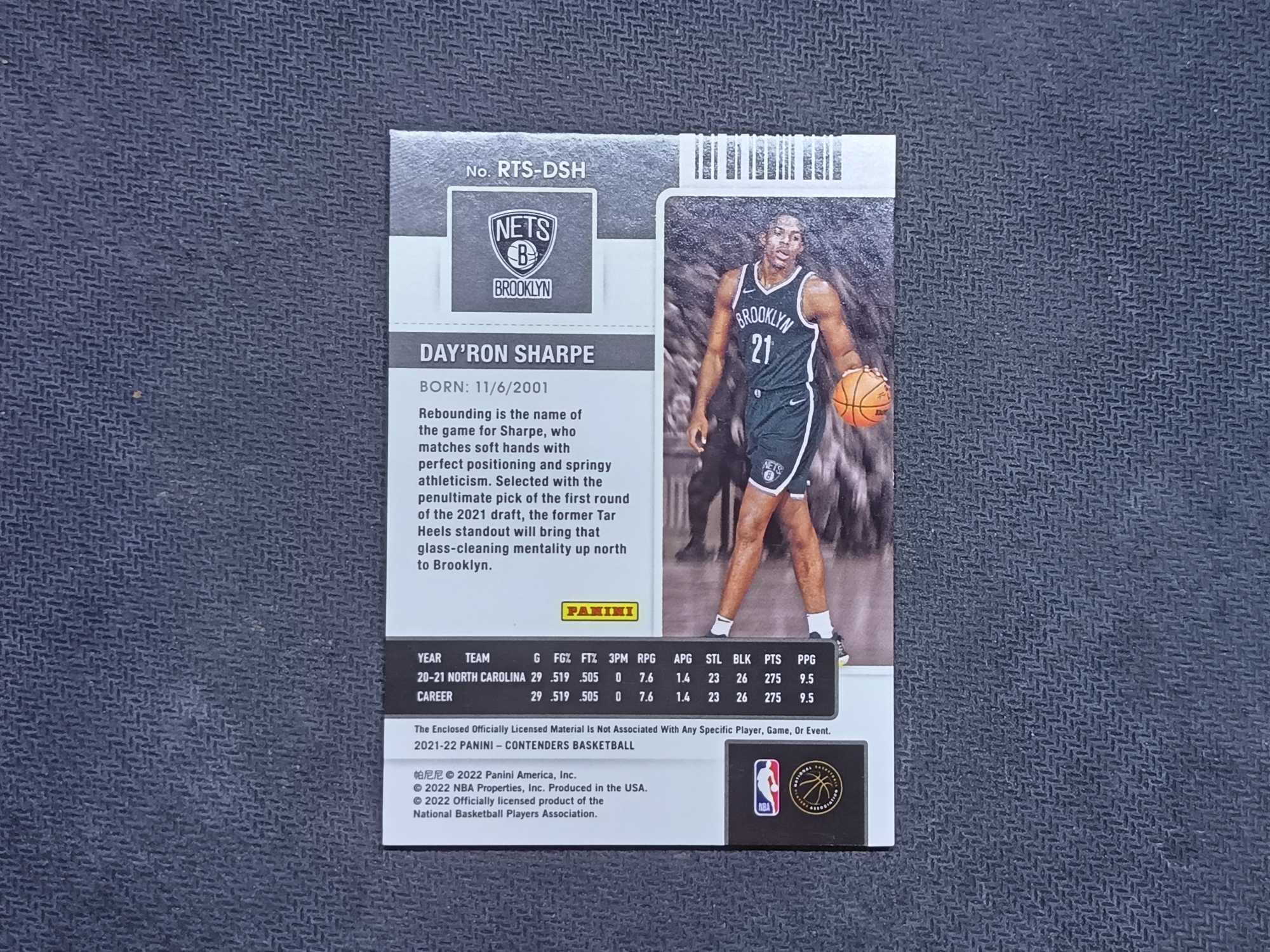 2021-22 Panini Contenders Day'Ron Sharpe RC 夏普 球票 碎冰 物料 实物 篮网 新秀