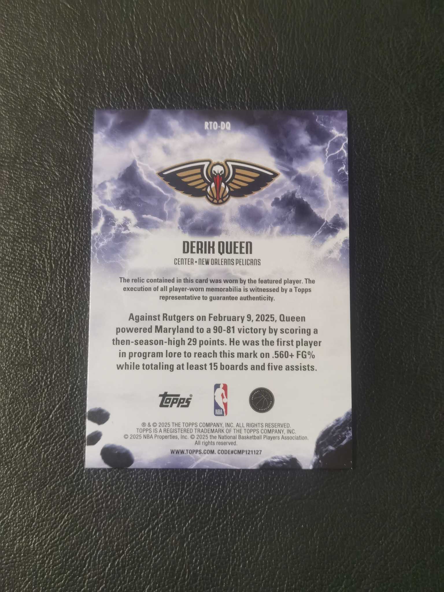 2025 Topps Flagship Derik Queen RC 奎因 新秀 球衣物料 鹈鹕潜力新星【ycy 包总】