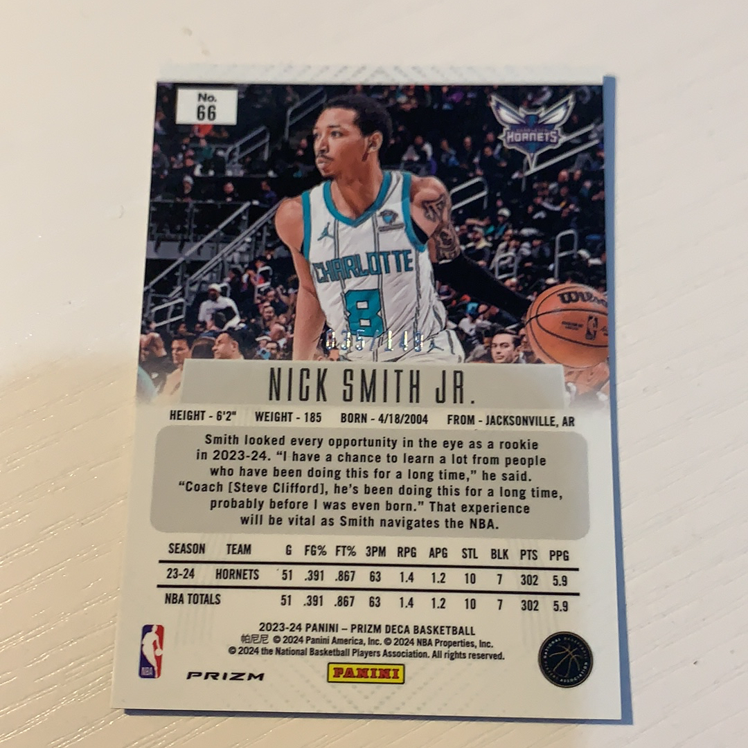 2023-24 Panini Prizm Nick Smith Jr. RC 新秀 小尼克 史密斯 DECA /149编 湖人轮换 爆发单场25分 詹姆斯 东契奇 里夫斯 队友 卡品如图
