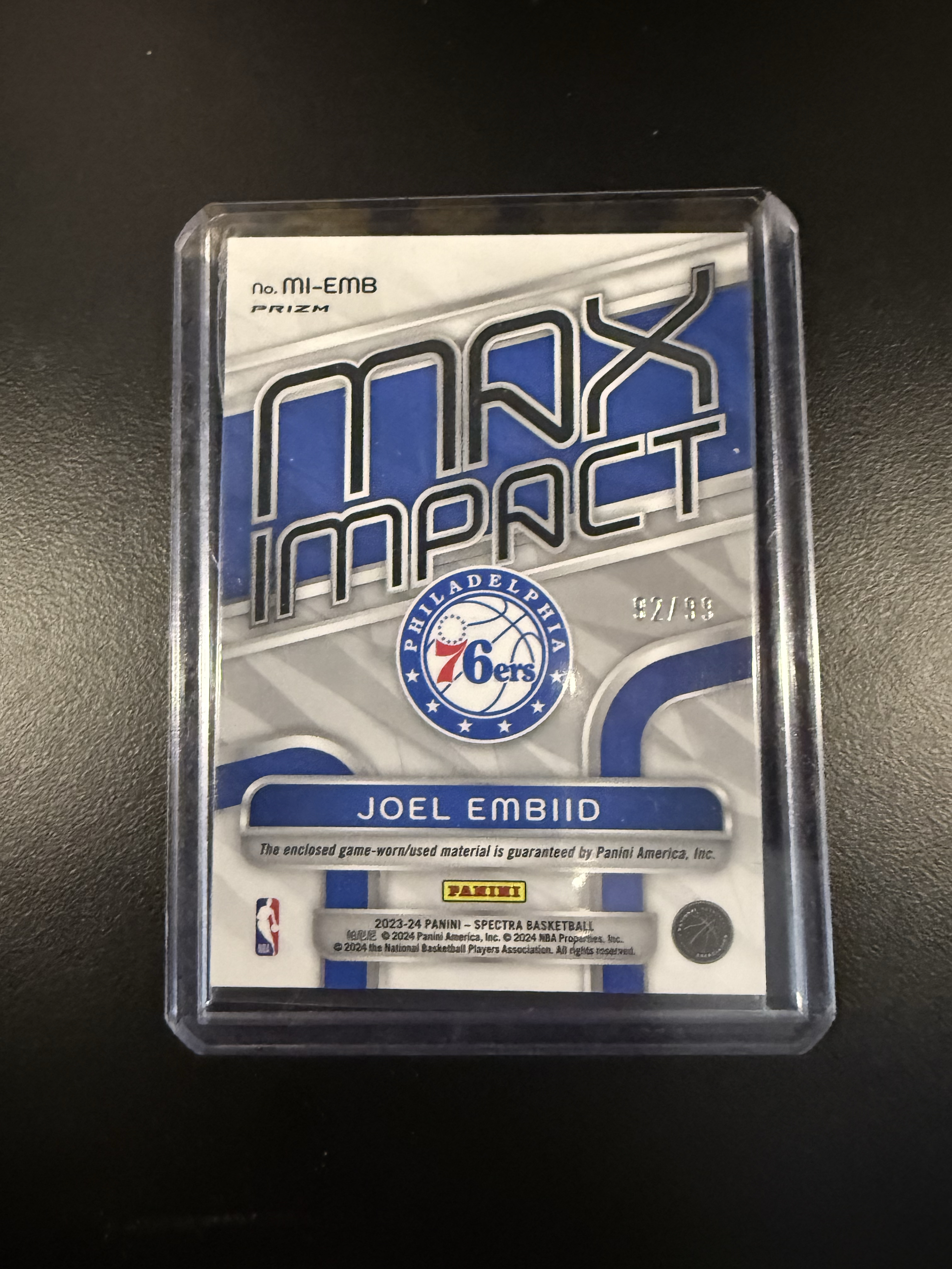 2023-24 Panini Spectra Joel Embiid 【巴夫金代拍】乔尔 恩比德 76人 光谱 脉冲折 球衣 物料 99编 实卡精美 卡品如图