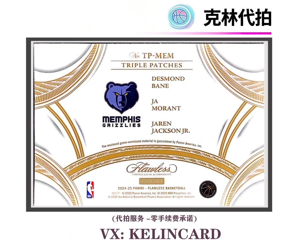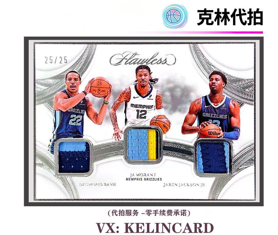 2024-25 Panini Flawless Ja Morant 贾莫兰特 /25编 手提 尾编 贝恩 小贾伦杰克逊 三人球衣切割 银平行 灰熊 三窗 GU球衣 物料 PATCH JJJ 未来可期