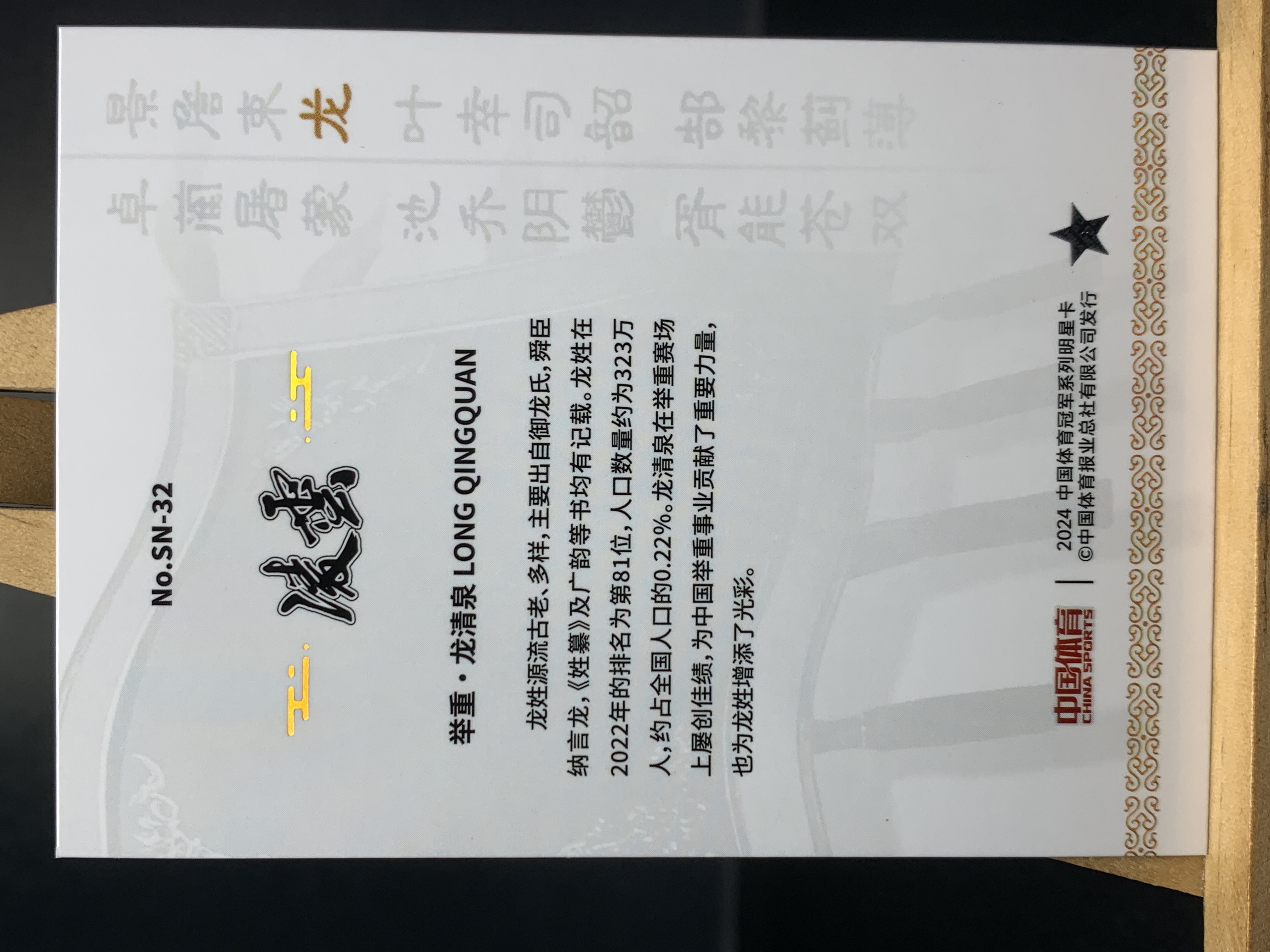 (S6) 2024 中国体育  凌云 姓氏特卡 银折 举重 龙清泉  实卡好看 收藏必备 卡品如图 ! ! !