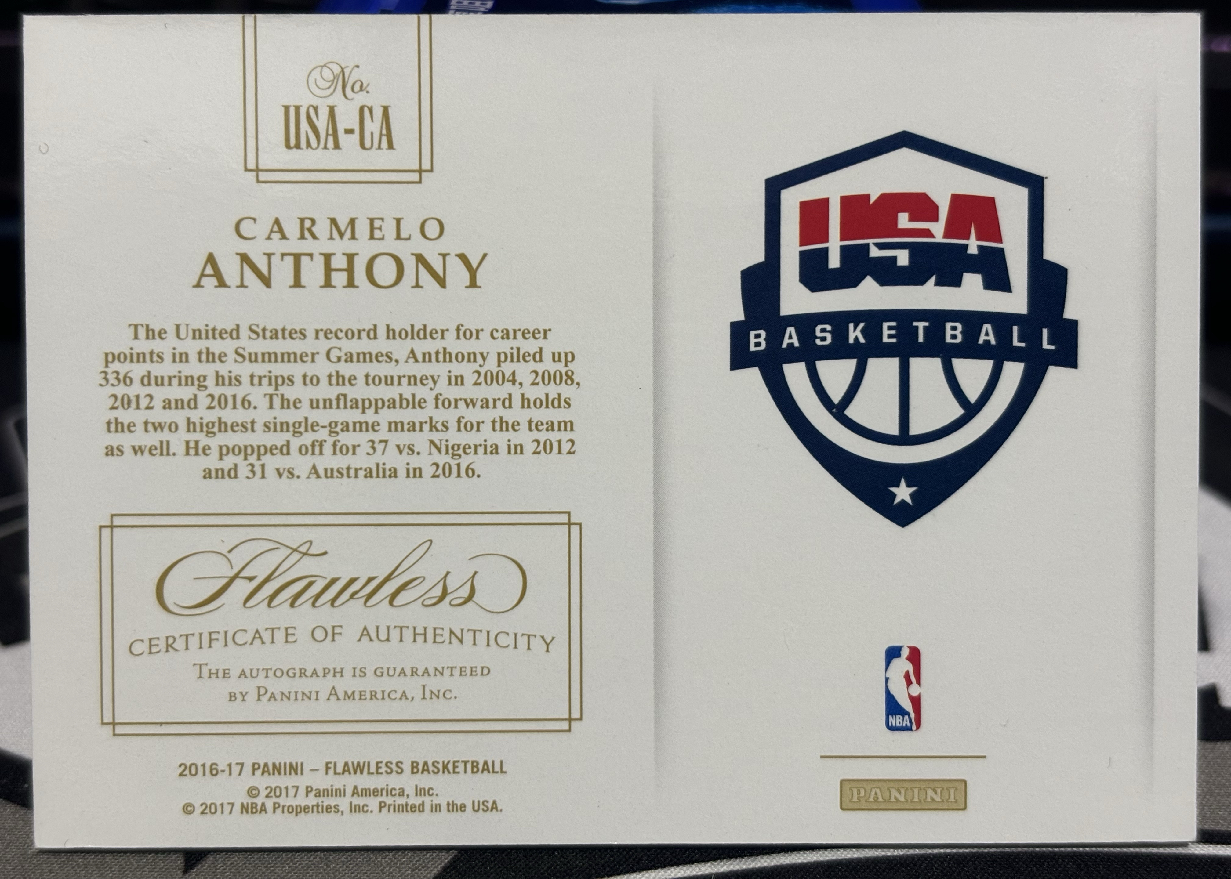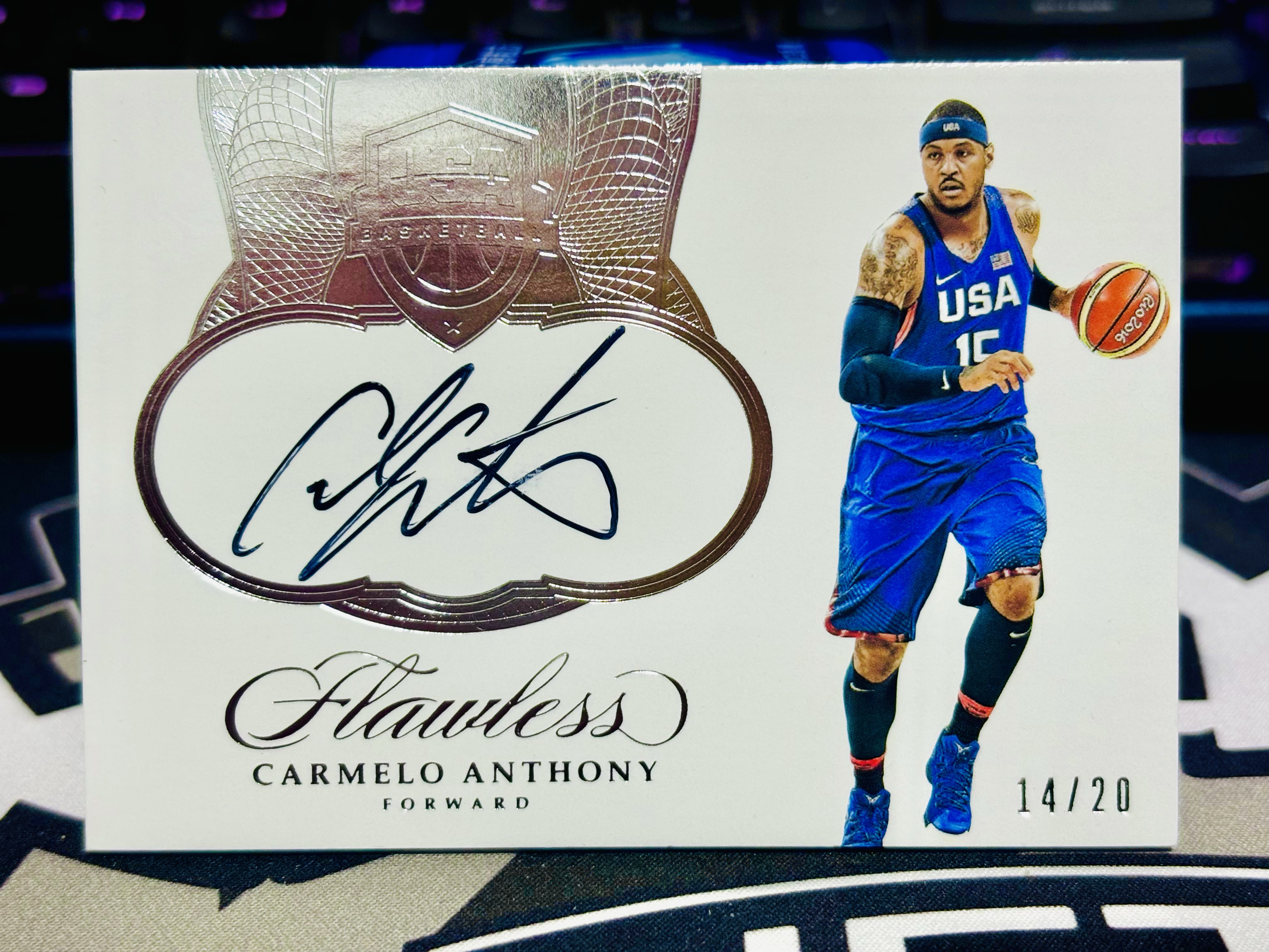 2016-17 Panini Flawless Carmelo Anthony 高端手提 甜瓜 卡梅隆 安东尼 银标20编国家队签字 14/20编美国队卡签 勒布朗 詹姆斯同届 科比 布莱恩特死敌