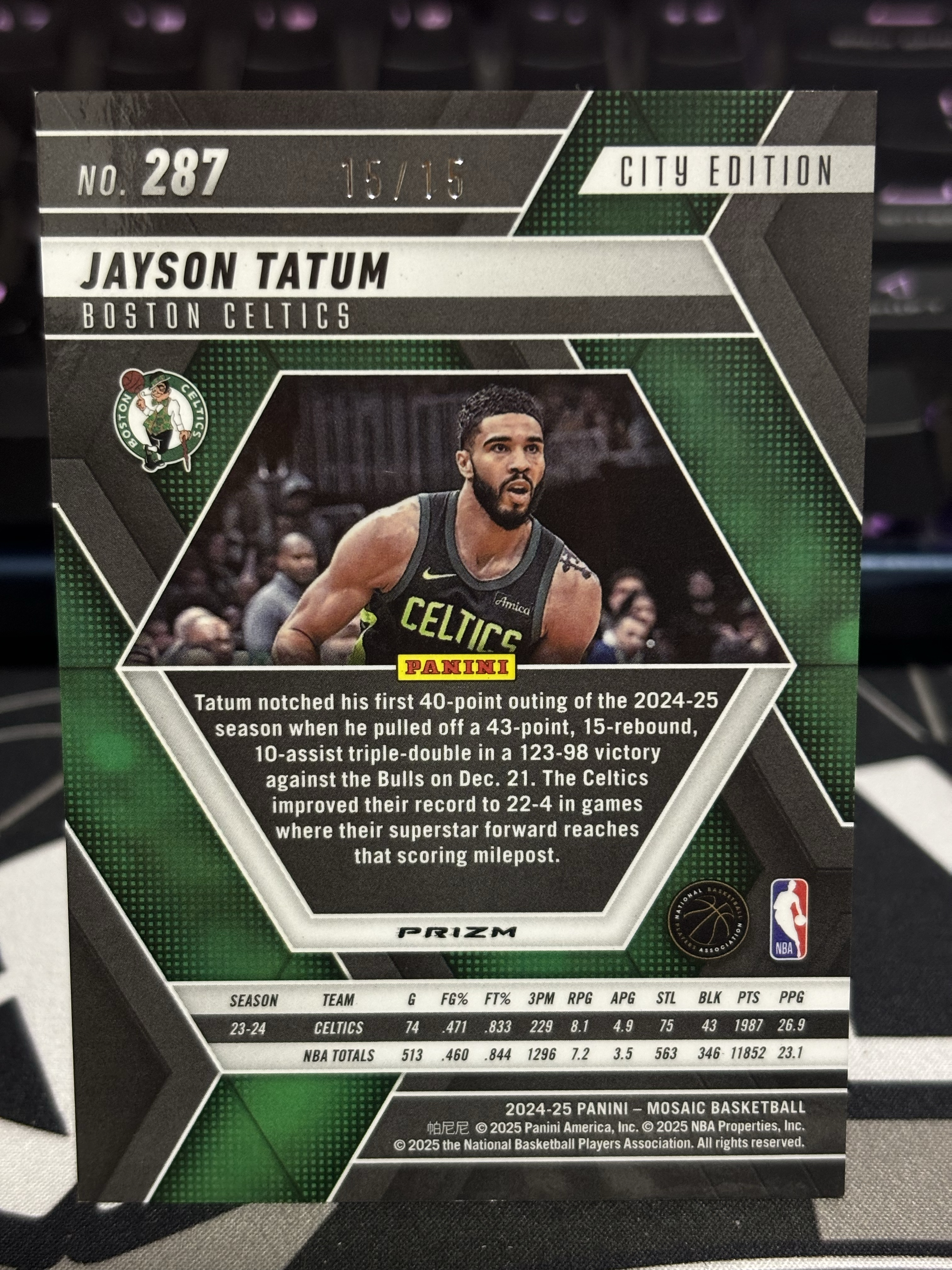 2024-25 Panini Mosaic Jayson Tatum 马赛克 凯尔特人 杰森 塔图姆 15编绿圈圈折 15/15尾编绿折 Color Match 不保卡品