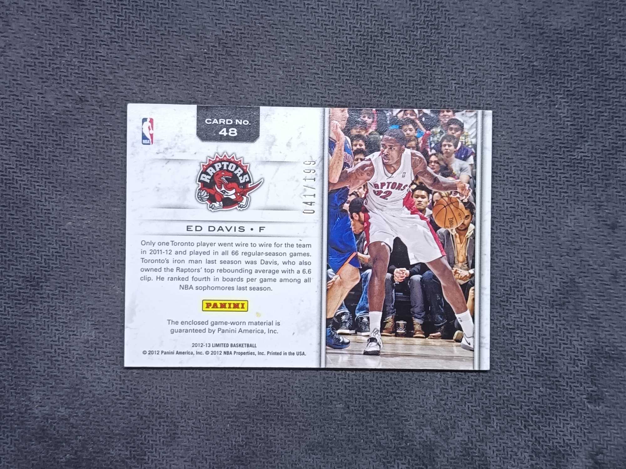2012-13 Panini PaniniPhotoGenicNBA Ed Davis 艾德 戴维斯 上镜 球衣 物料 实物 猛龙 199编