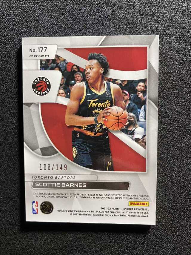 2021-22 Panini Spectra Scottie Barnes RC 陈氏拍卖 光谱 新秀 巴恩斯 猛龙 签字 卡签 球衣衣料 149编 凑套专收必备 行者1114