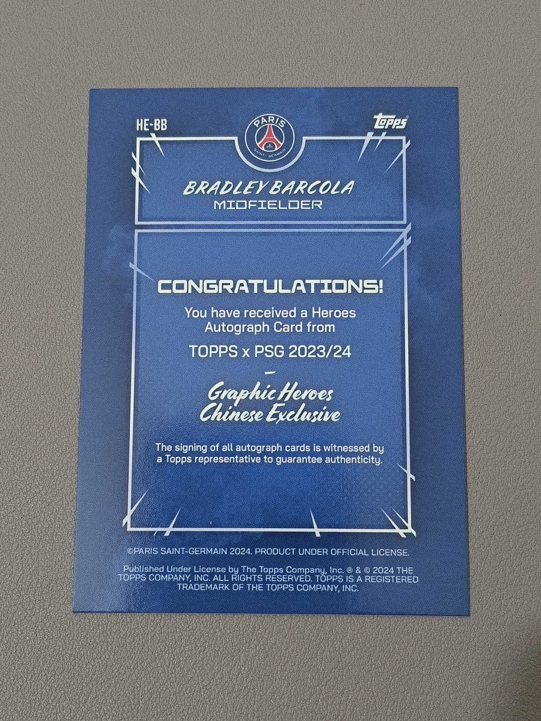 2024 Topps Chrome Bradley Barcola RC 布拉德利 巴尔克拉 RC 漫画 签字 队盒 大巴黎 法国 新秀 未来可期