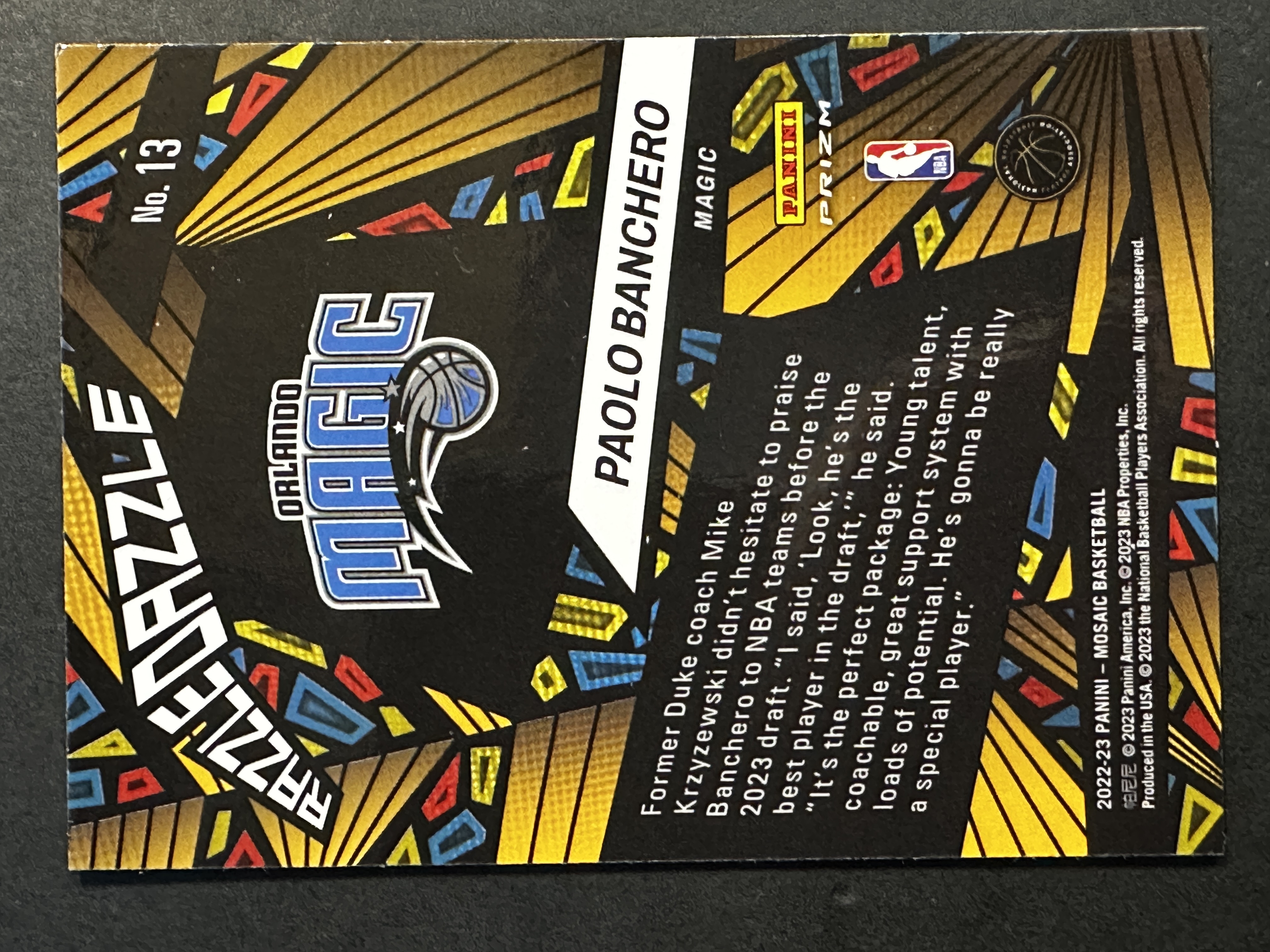 2022-23 Panini Mosaic Paolo Banchero RC 新秀年 保罗 RC 状元 班凯罗 魔术 班切罗 状元秀 大比例 马赛克 炫目 眩晕 卡品如图(王)