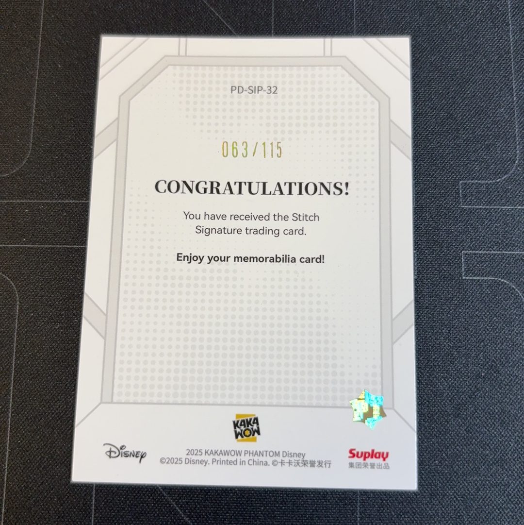 【风速狗】2025 Kakawow卡卡沃 Phantom 迪士尼Disney  Stitch 史迪奇 史迪仔 单人烫金签字 签名 63/115编 小胖
