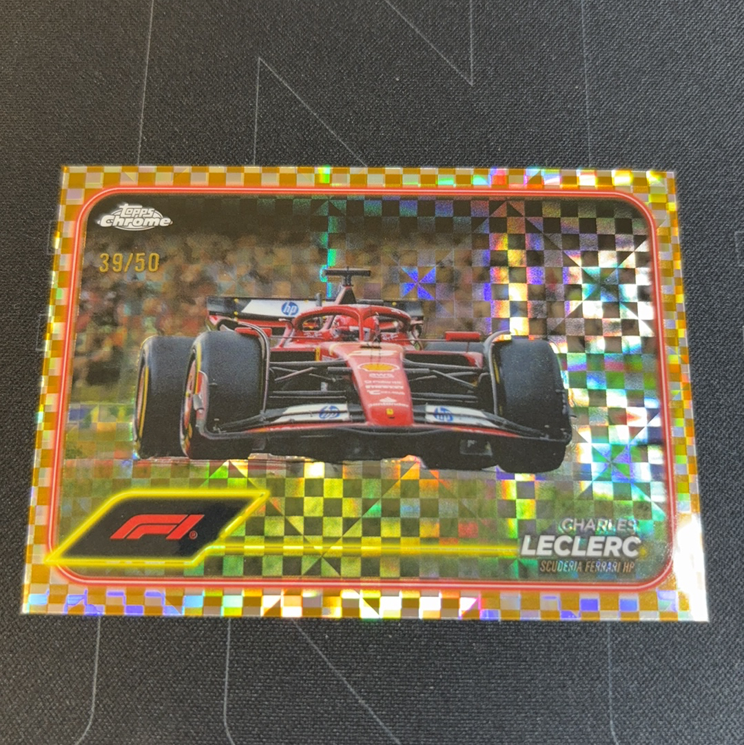【风速狗】2023 Topps Chrome Charles Leclerc 勒克莱尔 乐扣 法拉利车队 39/50编 金折 棋盘折射 F1方程式赛车 卡背轻印 小胖