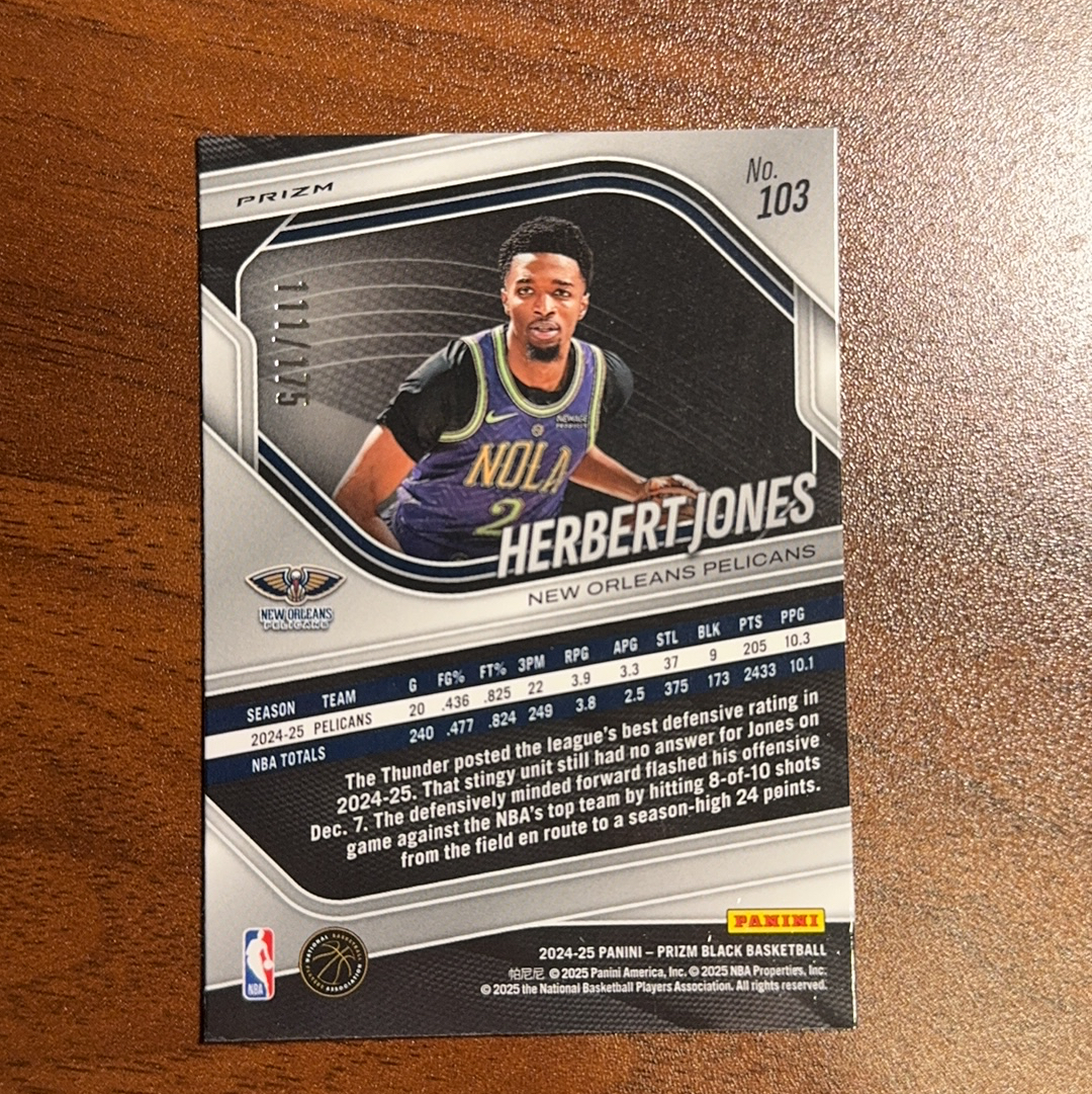 2024-25 Panini Prizm Black Herbert Jones 黑PZ 鹈鹕 赫伯特 琼斯 白折 111/175编 细节如图 收藏必备 1A