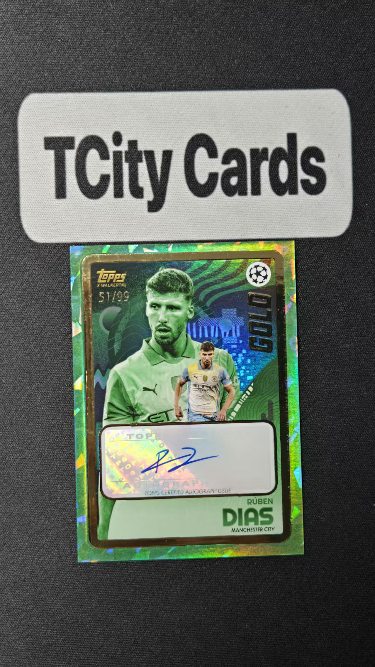 2024-25 Topps Walkertkl UCC Gold Ruben Dias 黄金盒 曼城 鲁本 迪亚斯 绿碎冰折 签字 Gold 特卡 99编 kk