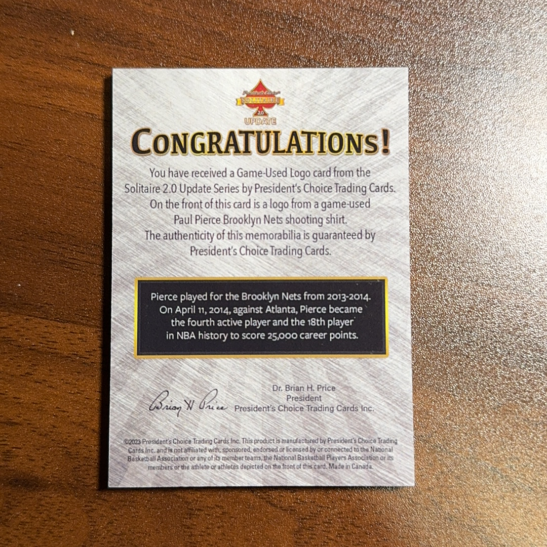 2023 President‘s Choice Paul Pierce 保罗 皮尔斯 真理 球衣 物料 刺绣 Logoman 1/1编 1of1 仅此一张 卡品如图 1A