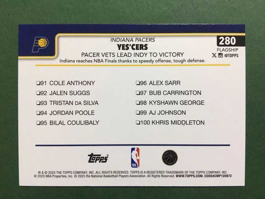 2025 Topps flagship Tyrese Haliburton 元年 步行者 哈利伯顿 特纳 弗菲 银折 折射 胜利庆祝队照特卡 横版 选图超帅 凑套必备 卡品如图#曦