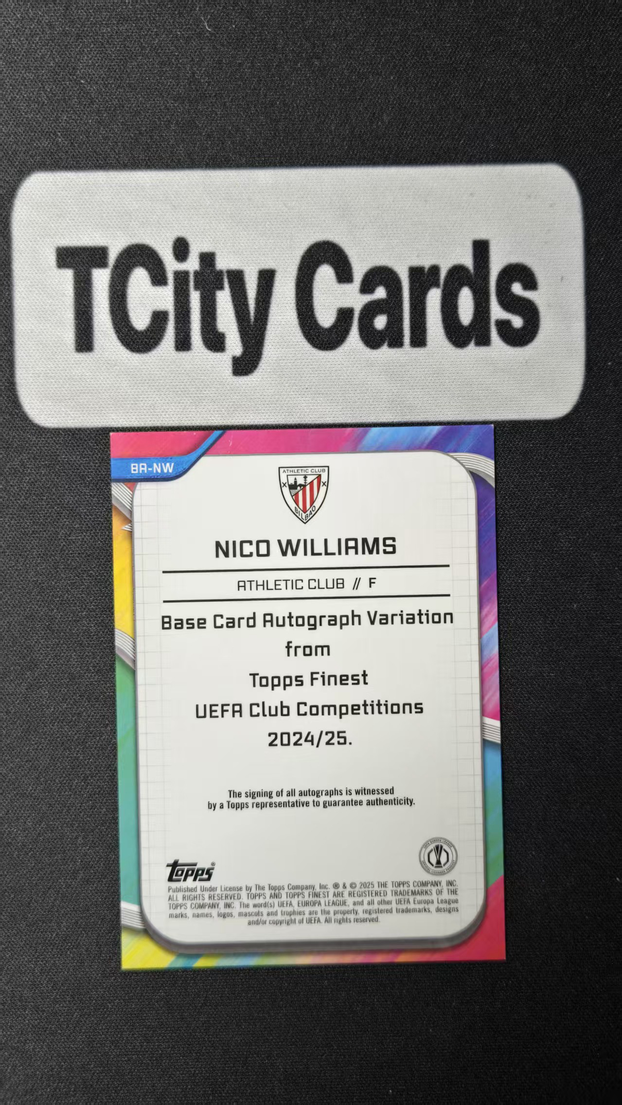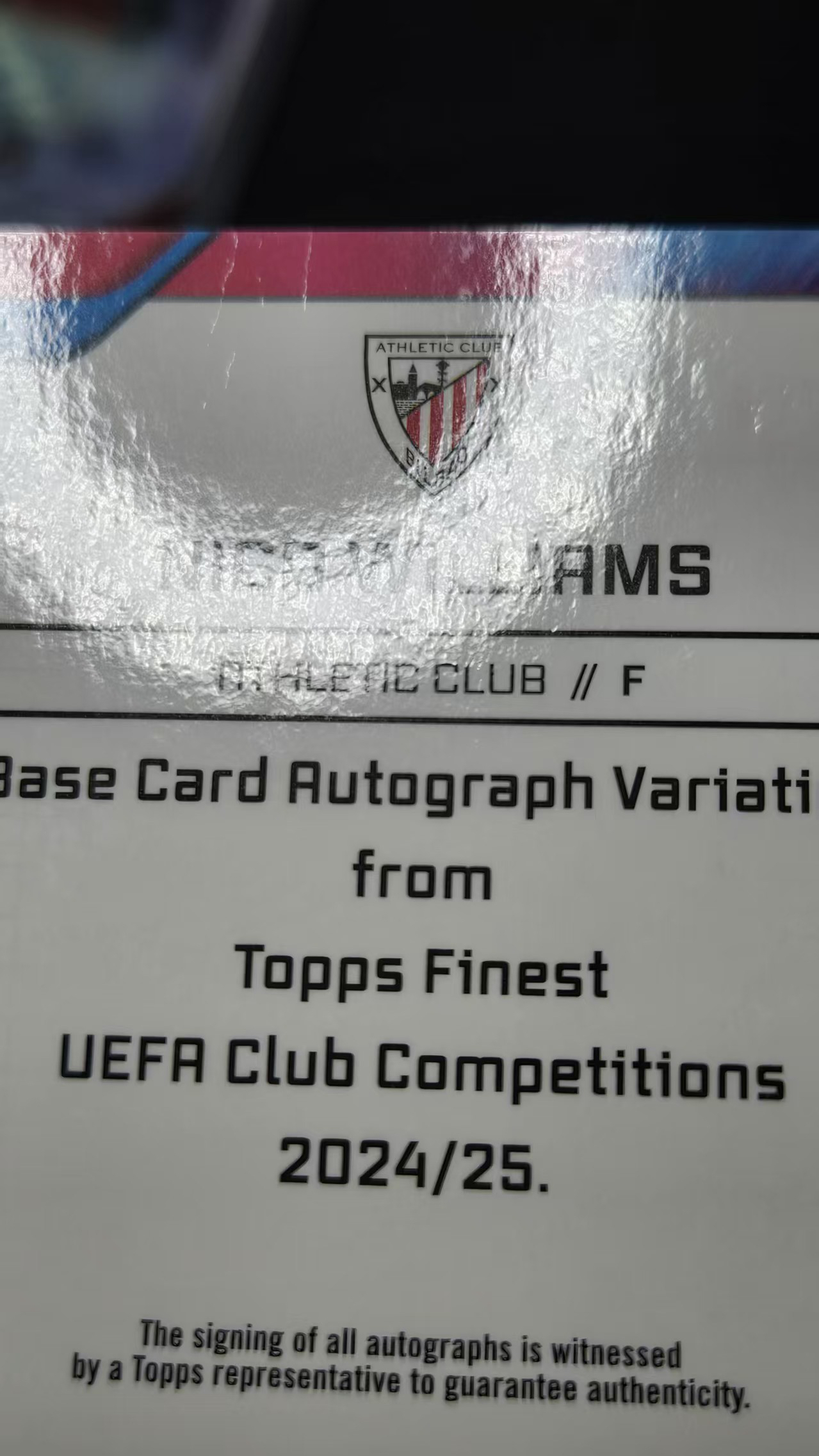 2025  Topps Finest Nico Williams 欧战 毕尔巴鄂竞技 西班牙 尼科 威廉姆斯 签字 紫折 299编 kk