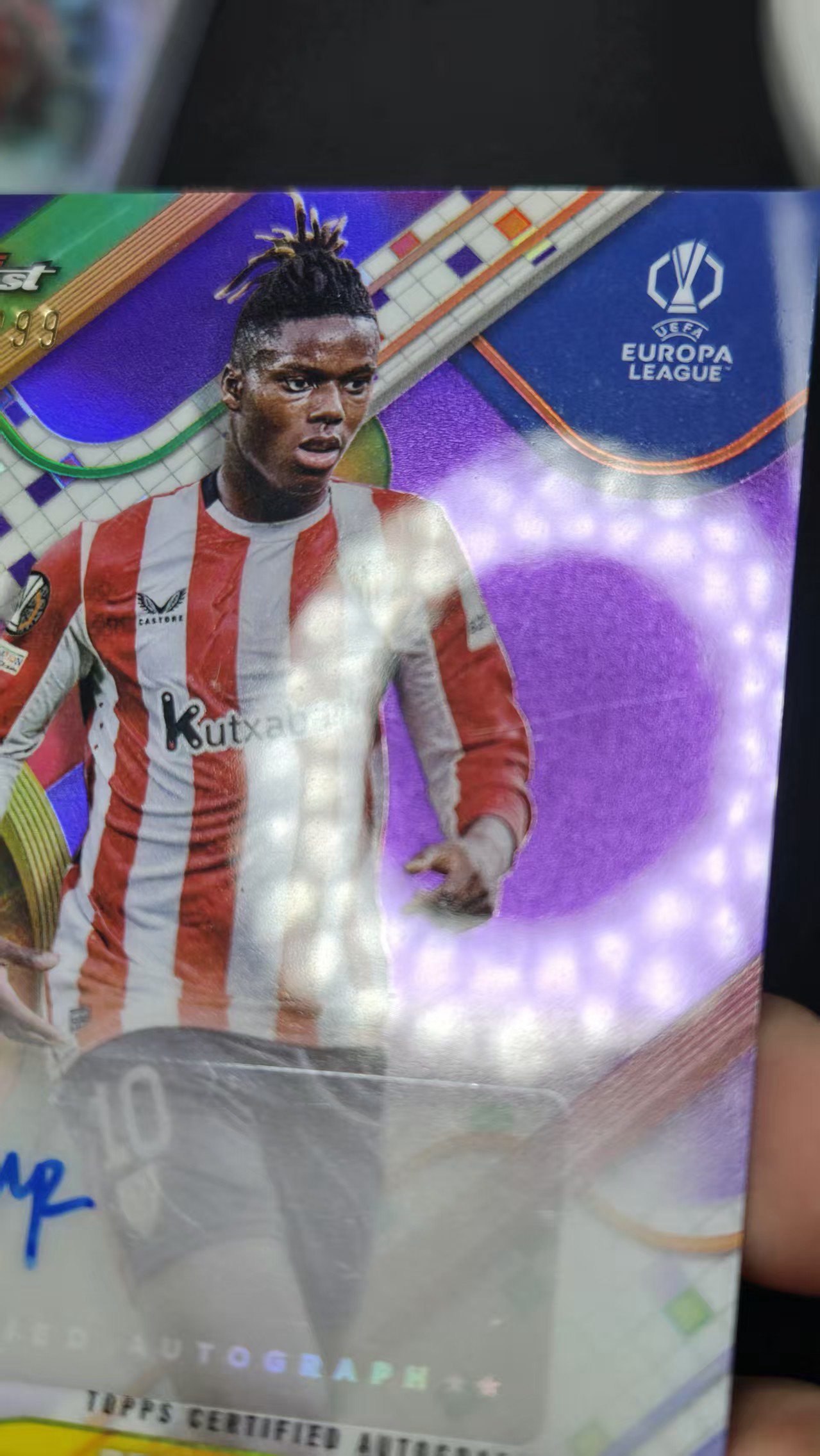 2025 Topps Finest Nico Williams 欧战 毕尔巴鄂竞技 西班牙 尼科 威廉姆斯 签字 紫折 299编 kk