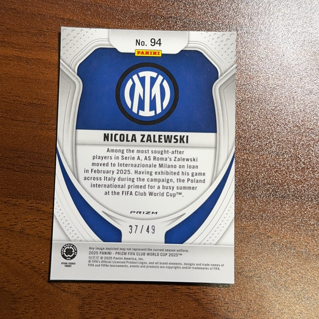 2025 Panini Prizm FIFA Club World Cup世俱杯 Nicola Zalewski 扎莱夫斯基 国际米兰 37/49编 紫格子折  1A