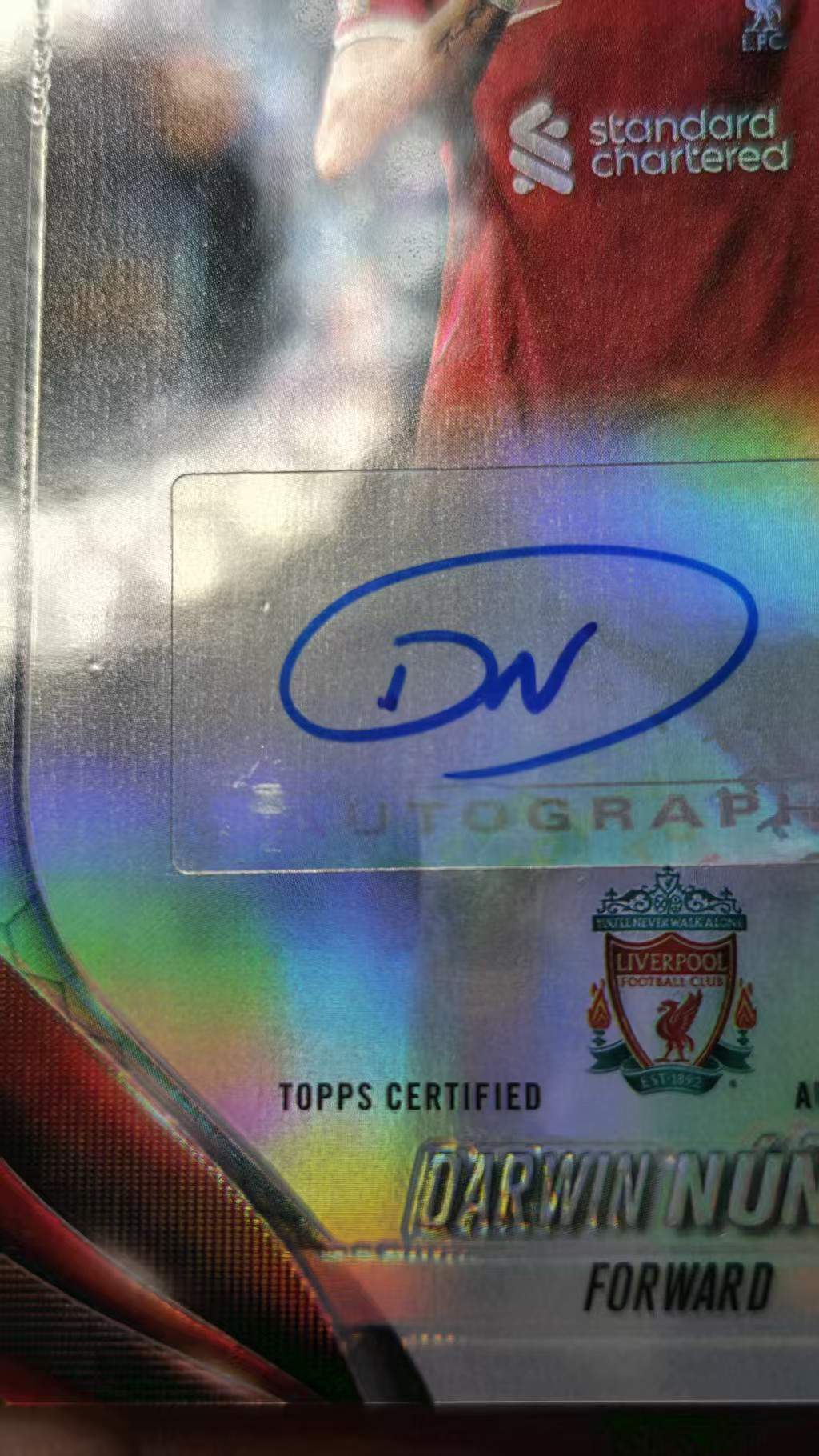 topps 2023-24 Chrome UCC 欧冠 欧战 利物浦  银折 签字 达尔温 努涅斯 Darwin Nunez kk