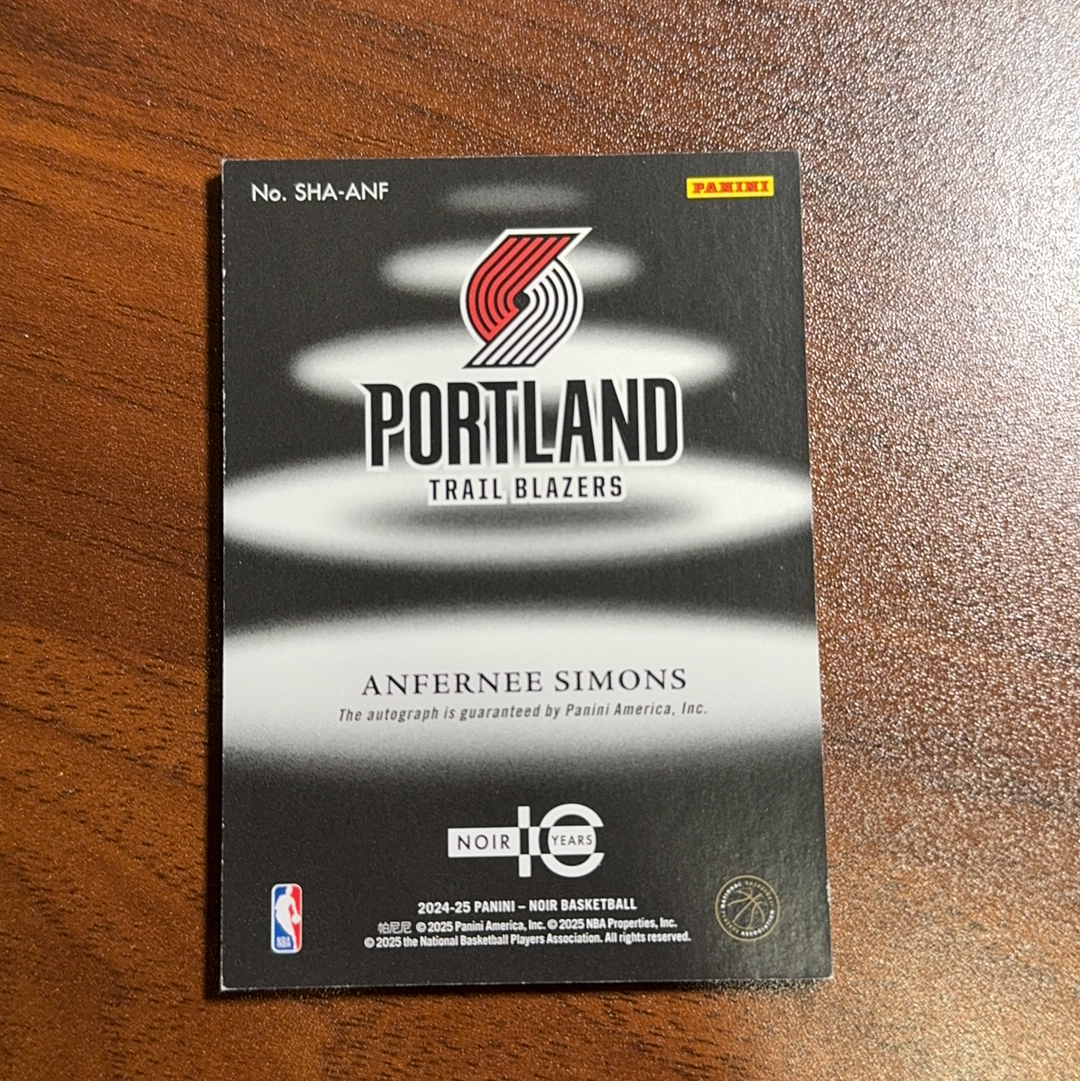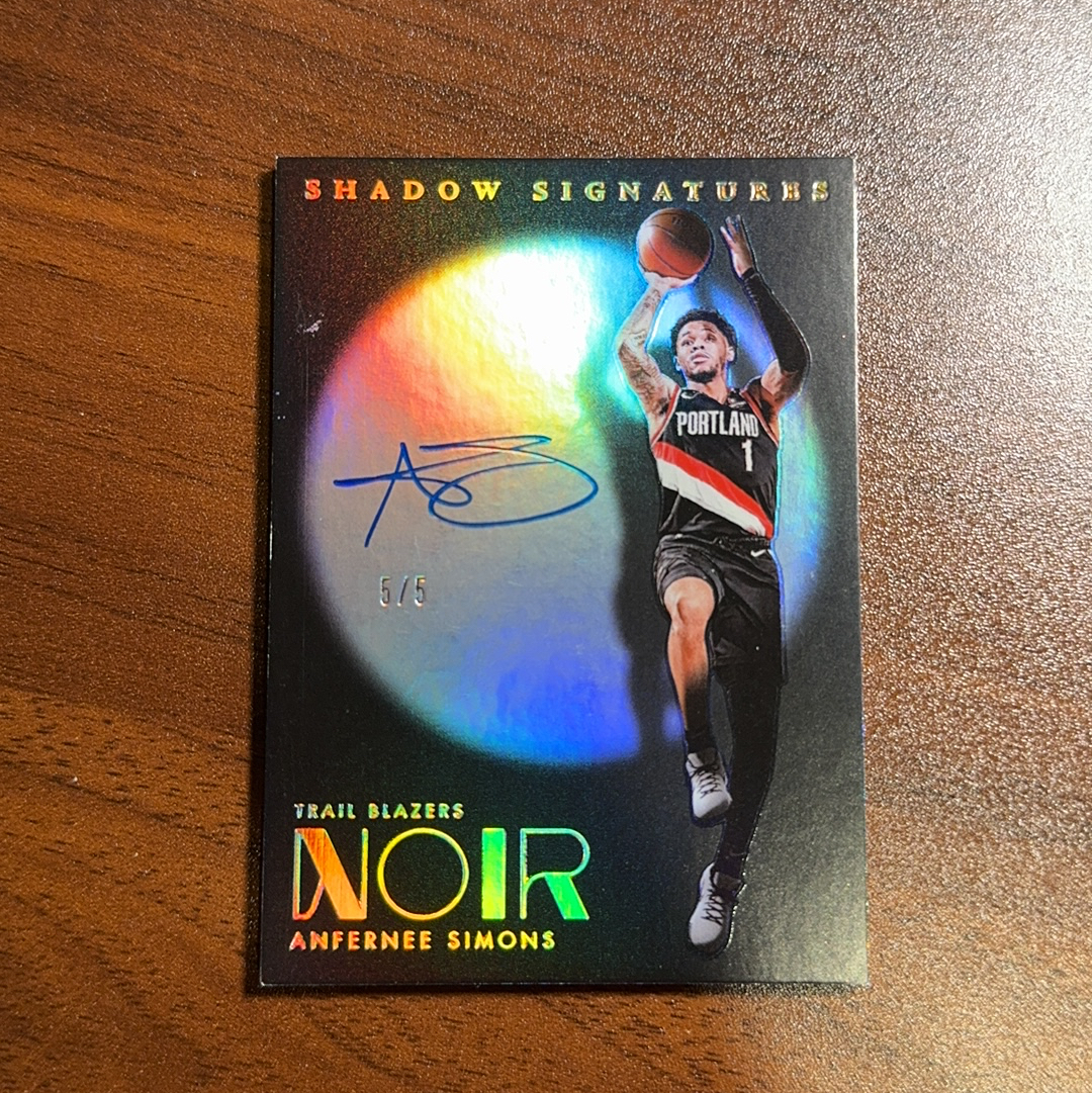2024-25 Panini Noir Anfernee Simons 安芬尼西蒙斯 诺尔 5/5编 签字 卡签 影子签 金平行 开拓者 瑕疵如图 1A
