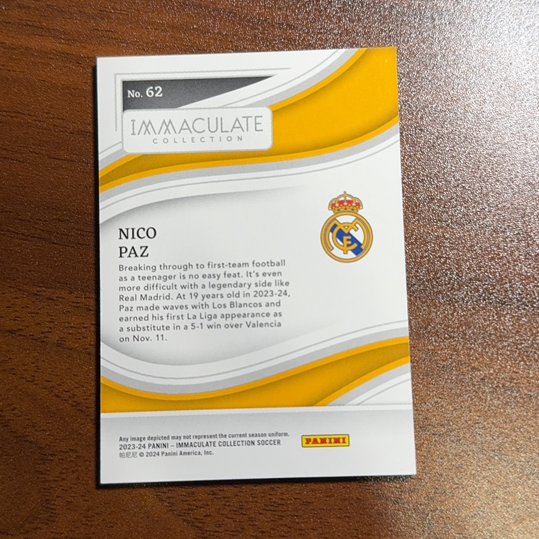 2023-24 Panini Immaculate Nico Paz RC IMM系列 ‌‌尼科-帕斯 /19编 红平行 皇马 皇家马德里 阿根廷 RC新秀 瑕疵如图 1A