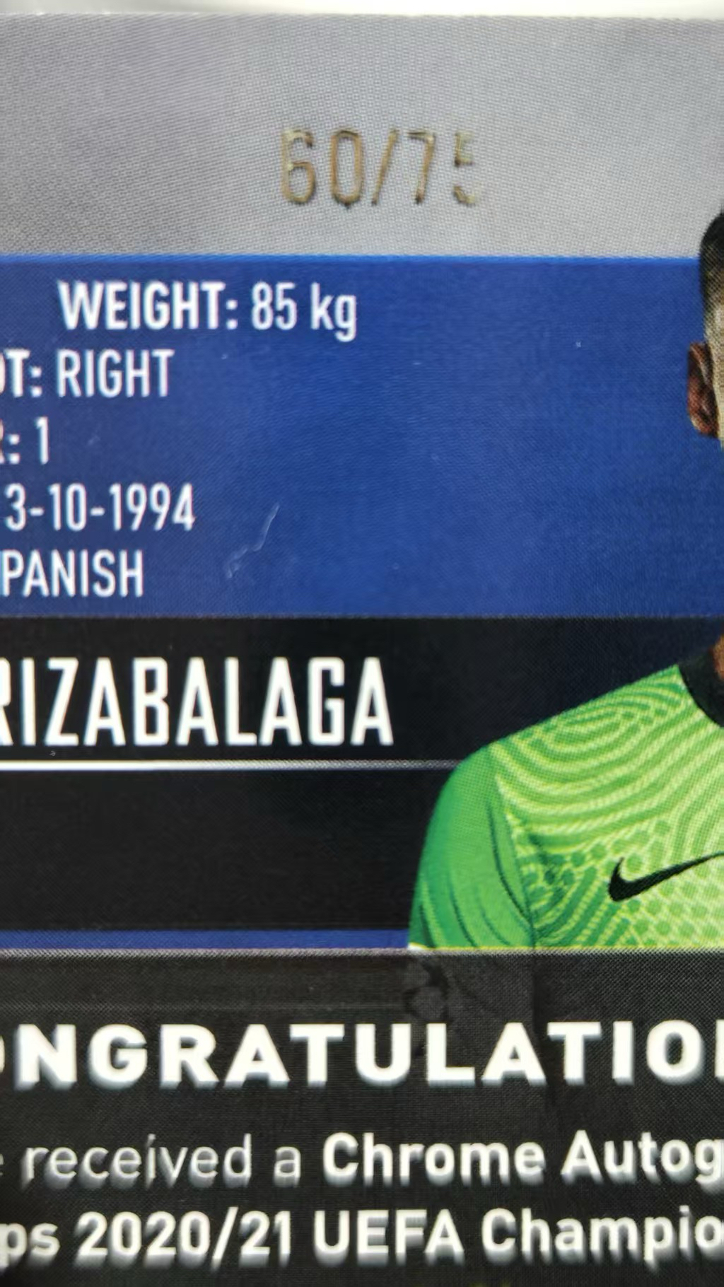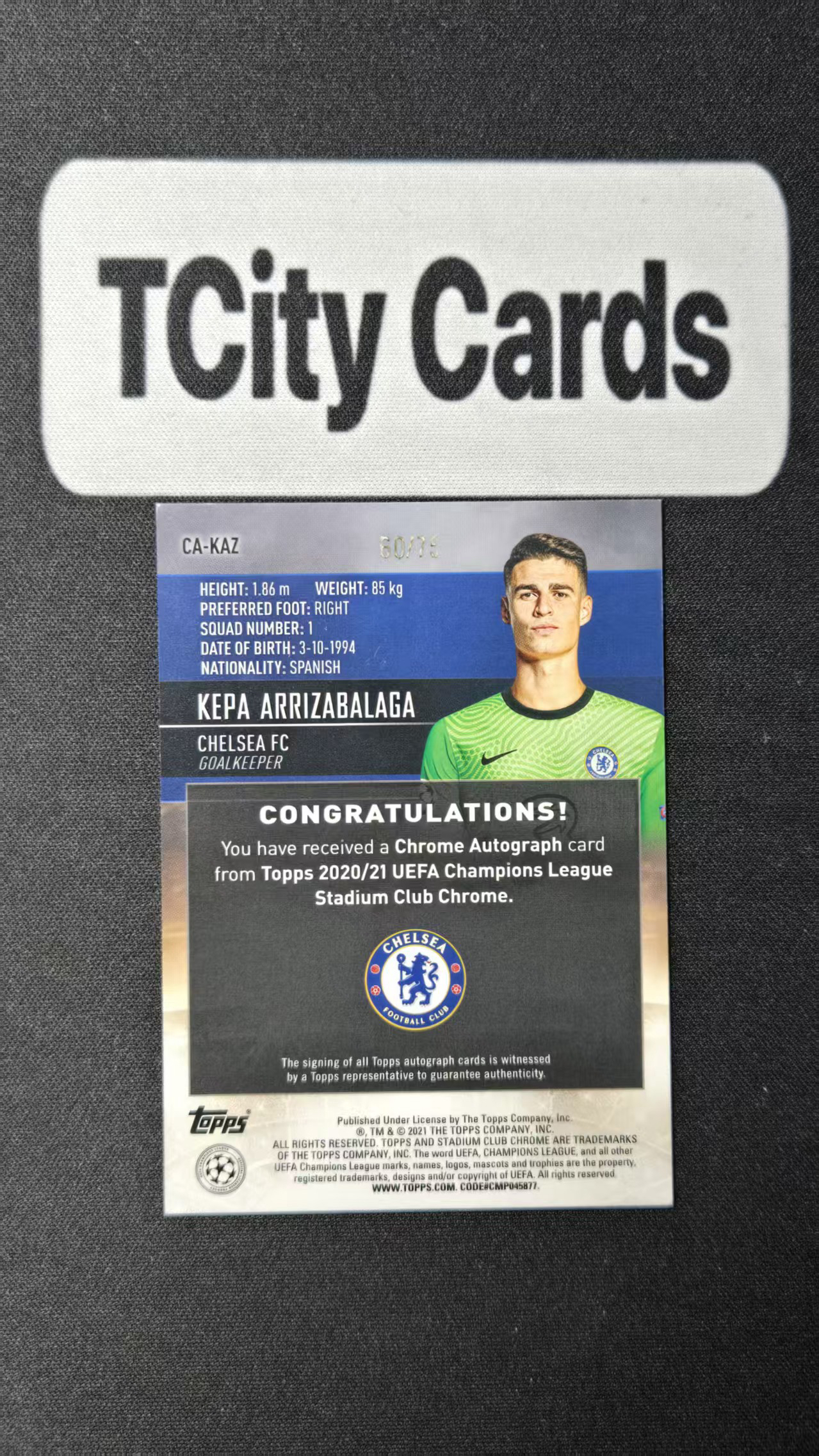 2021 Topps Stadium Club Chrome Kepa Arrizabalaga 凯帕 签字 贴签 切尔西 欧冠 竞技场 皇马 西班牙 凯指导 75编 kk