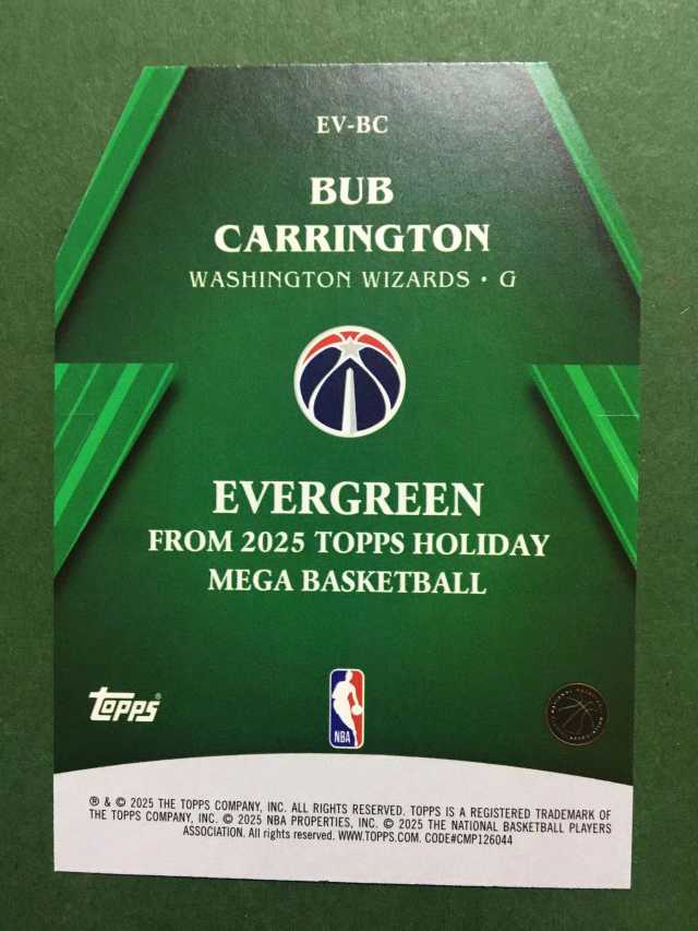 2025 Topps Holiday Bob Carrington 节日版 奇才 鲍伯 卡灵顿 折射 圣诞树 异形特卡 EVERGREEN 萨尔 普尔同队 卡斯尔同届 未来可期 凑套必备 卡品如图#纪