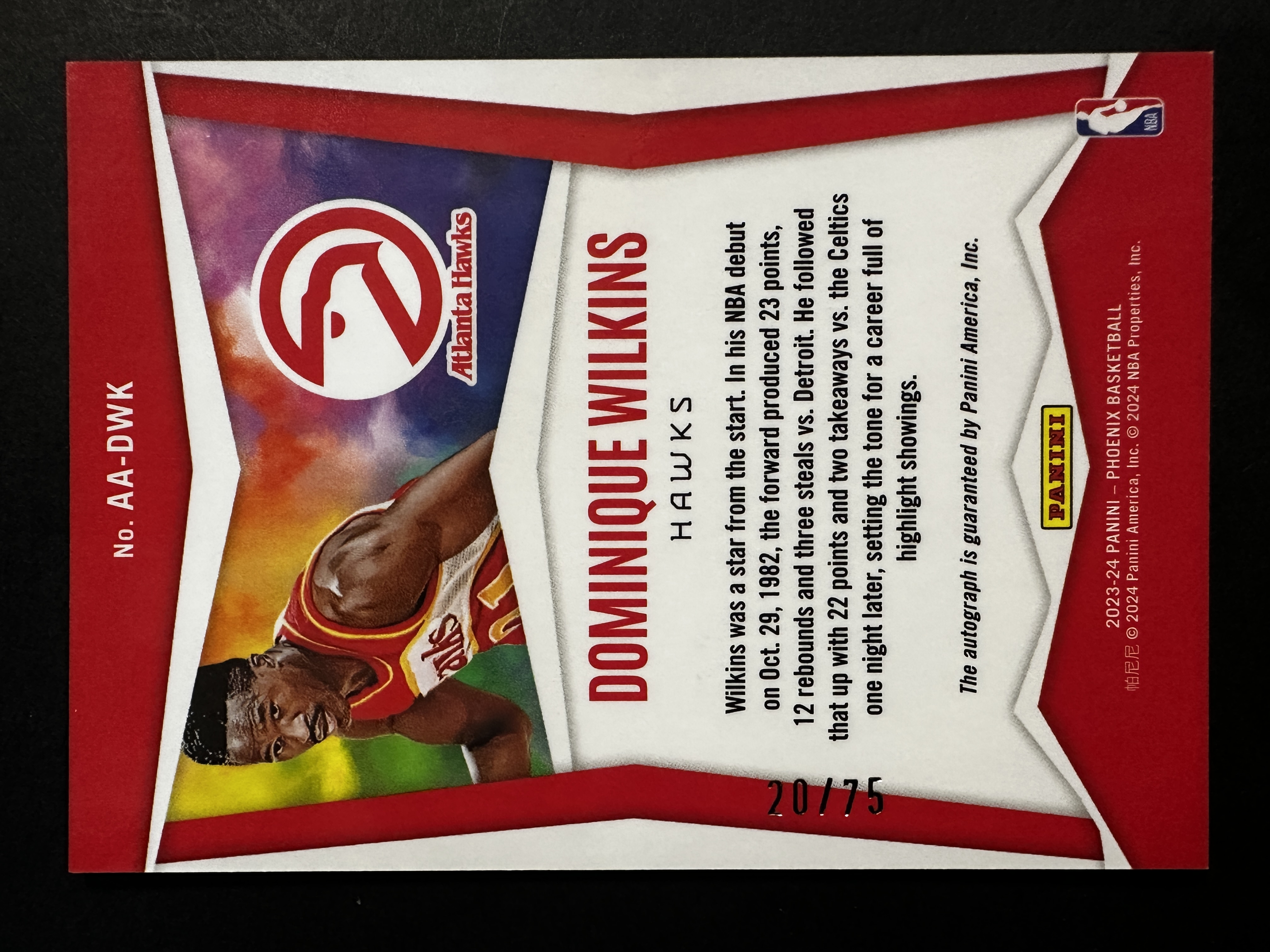 2023-24 Panini Phoenix Dominique Wilkins 老鹰 名宿 多米尼克 威尔金斯 人生电影精华 红折 75编 签字 贴签 卡品如图