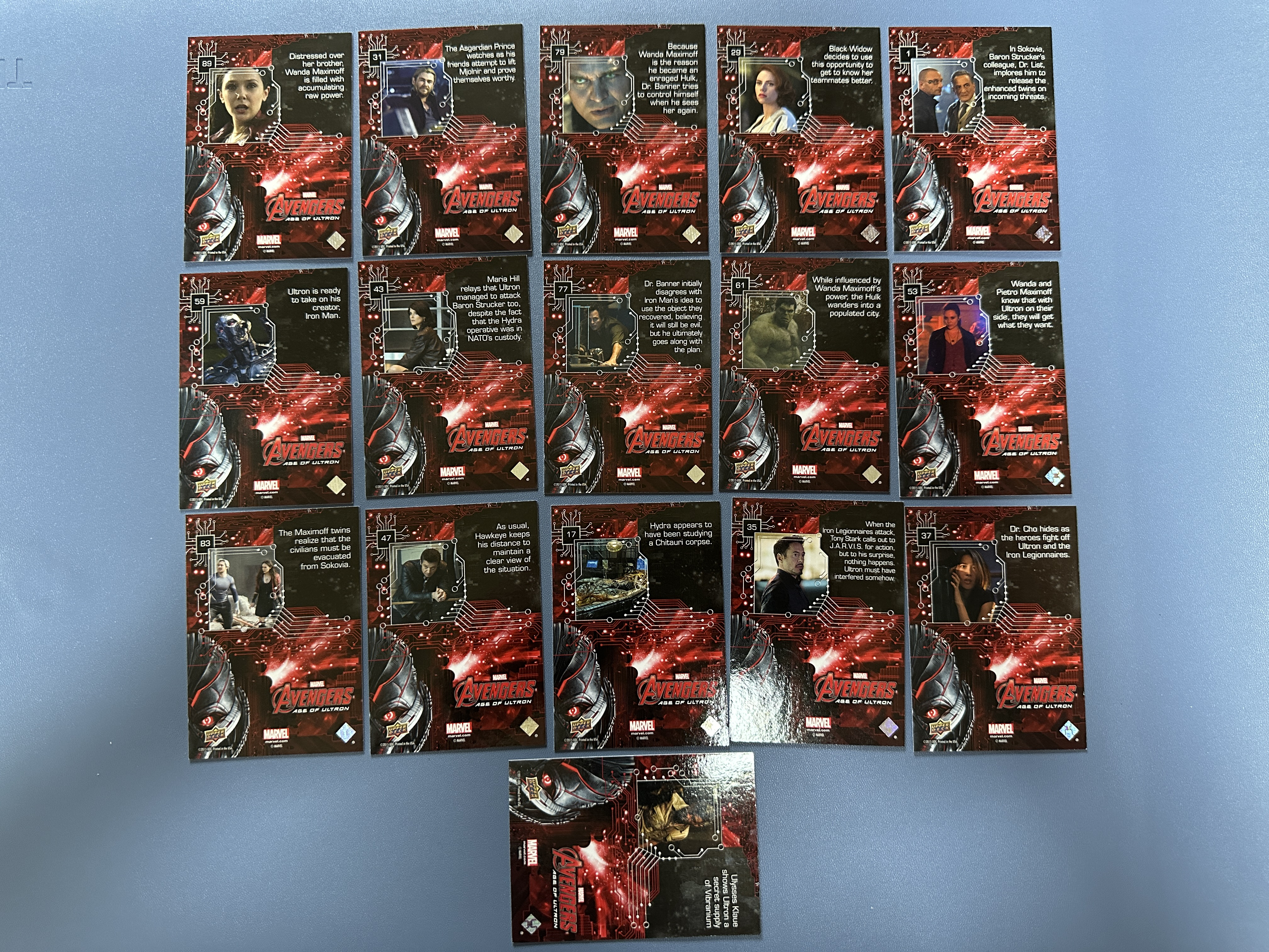 2015 UD 官卡 复仇者联盟1 独立电影 漫威 16张 特卡 银标志特卡 打包 钢铁侠 黑寡妇 奥创 红女巫 绿巨人 浩克 绝版老卡 值得收藏 卡膜发货