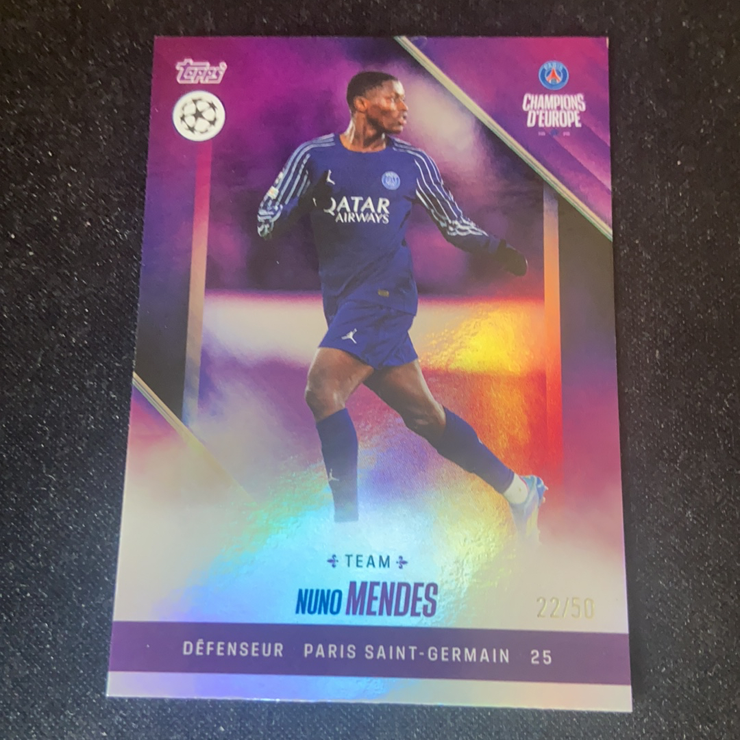 2025 Topps UEFA Champions League Nuno Mendes 巴黎冠军盒 努诺 门德斯 葡萄牙 边路爆点 50编 卡品如图 凑套必备 大魔王