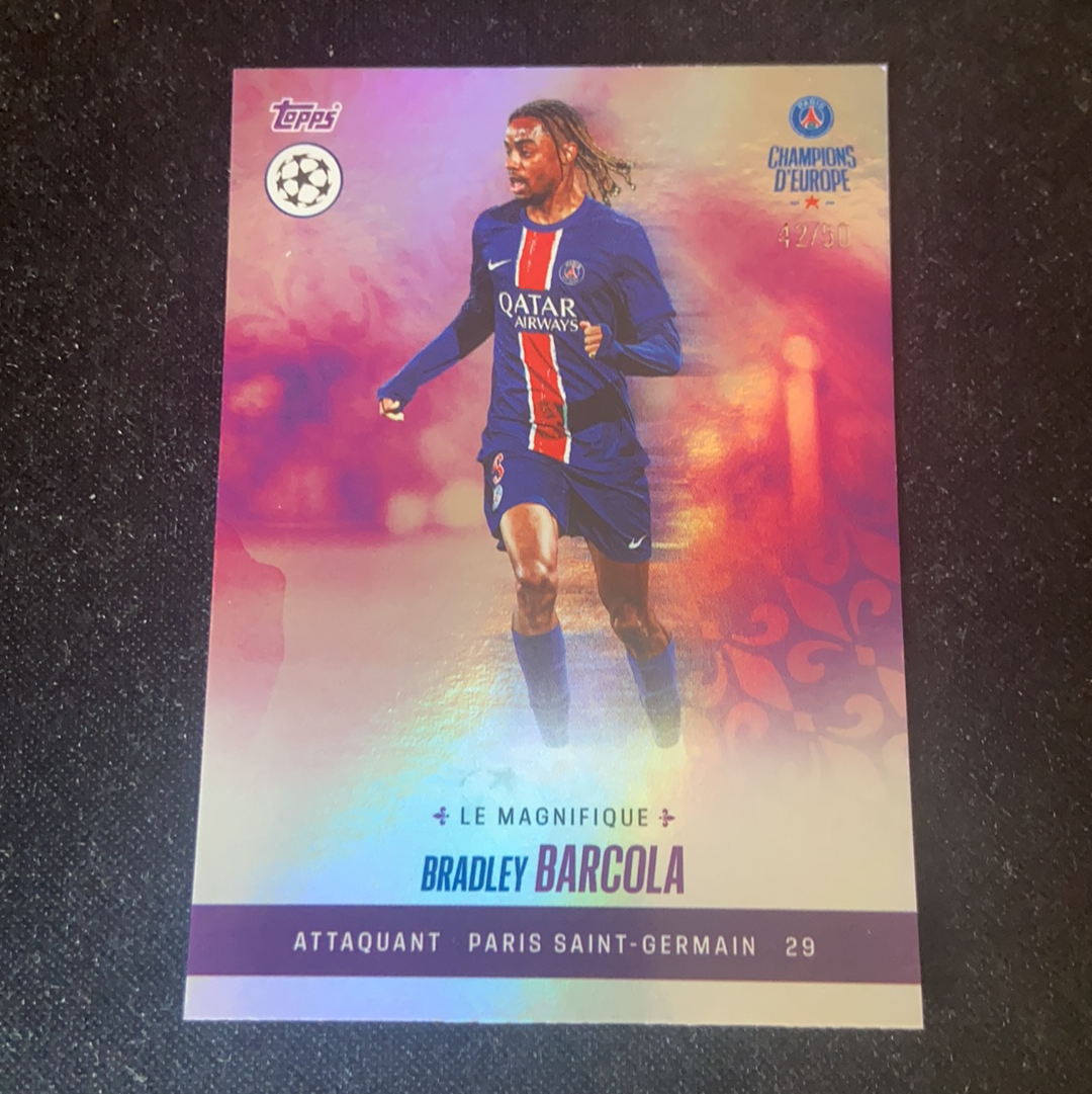 2025 Topps UEFA Champions League Bradley Barcola 巴黎冠军盒 巴尔科拉 法国 边路飞翼 爆破手 50编 卡品如图 大魔王