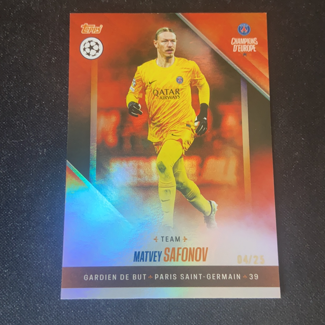 2025 Topps UEFA Champions League Matvei Safonov 巴黎冠军盒 萨福诺夫 冠军成员 25编 凑套必备 卡品如图 大魔王