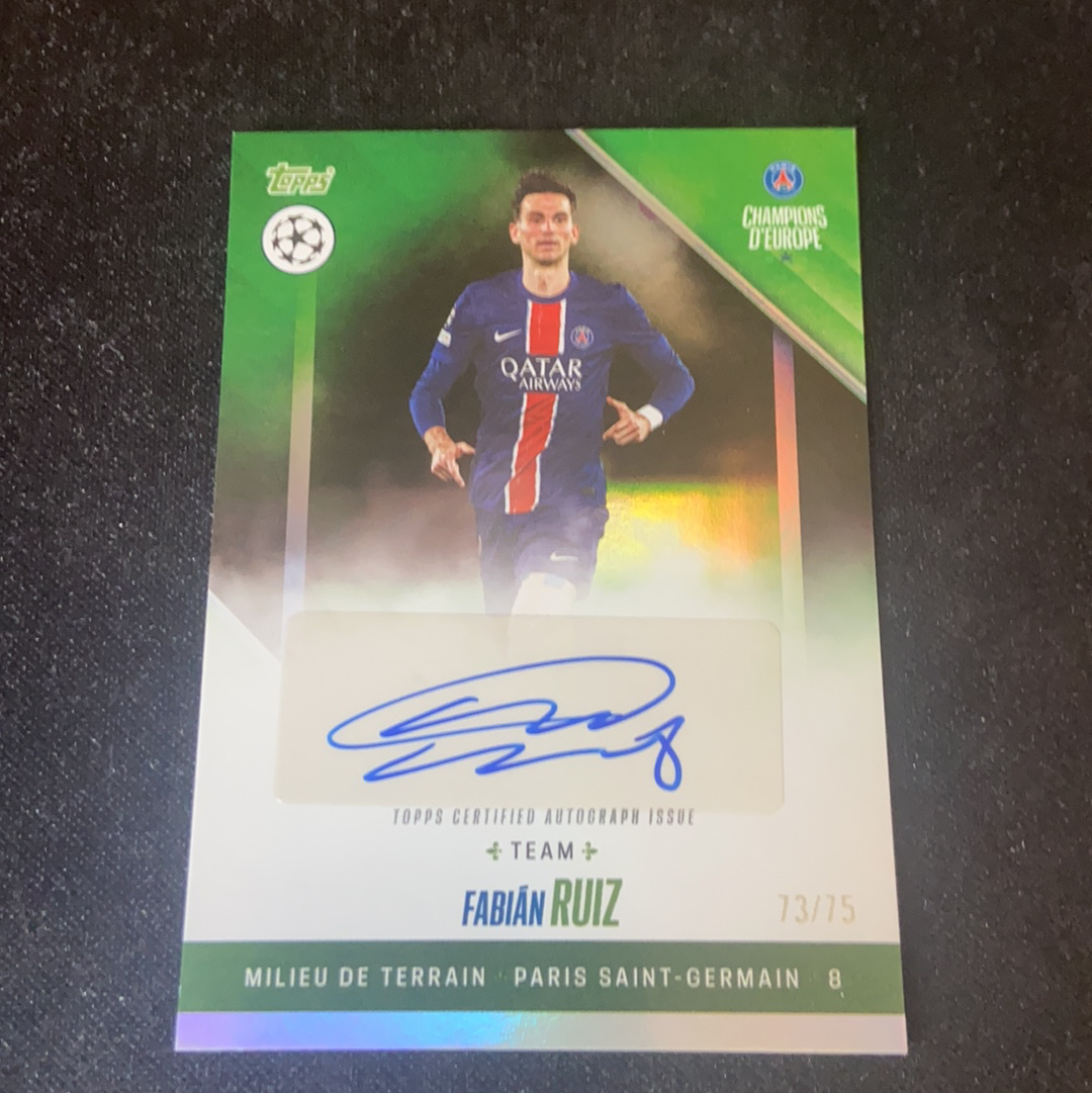2025 Topps UEFA Champions League Fabian Ruiz 巴黎冠军盒 法比安 鲁伊斯 西班牙 75编 签字 背号签 卡品如图 大魔王