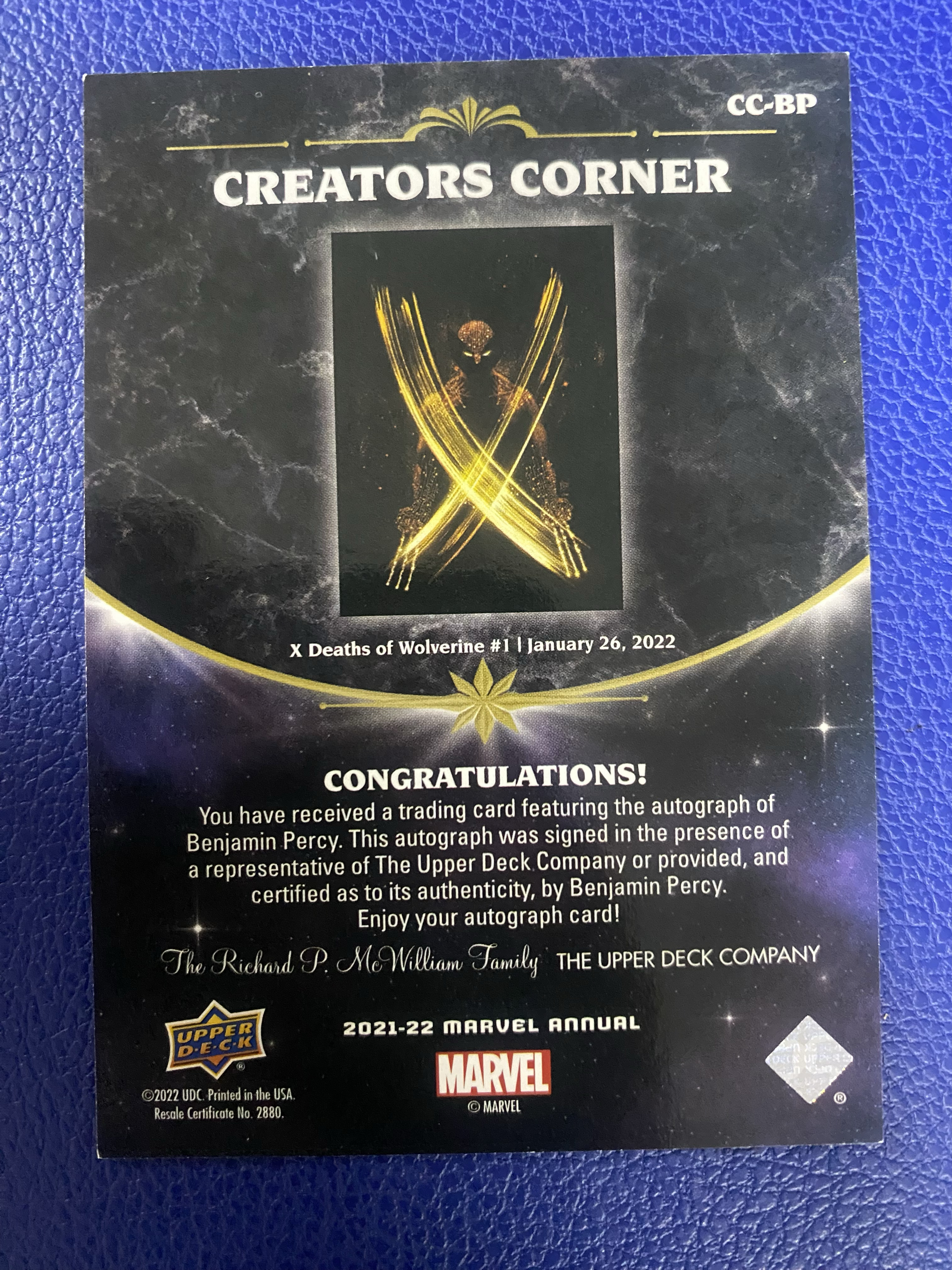 2022 Upper Deck Marvel (MCU) Annual UD 21-22漫威年度 年鉴 编剧作者本杰明•珀西 签字 签名 贴签 1:130比例 金刚狼