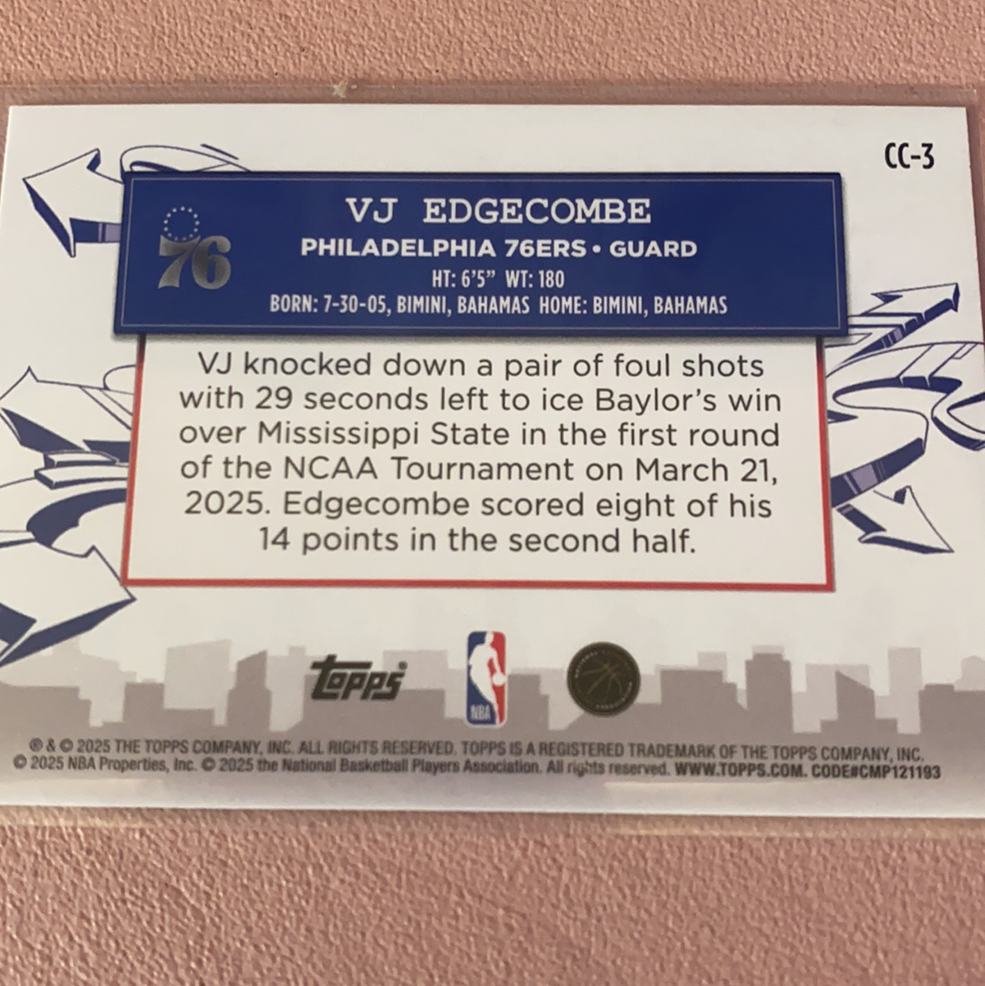 2025 Topps FlagshipOne Valdez VJ Edgecombe Jr RC 新秀 76人 VJ 埃奇库姆 最佳新秀 特卡 比例 未来可期 不保卡品 专收凑套