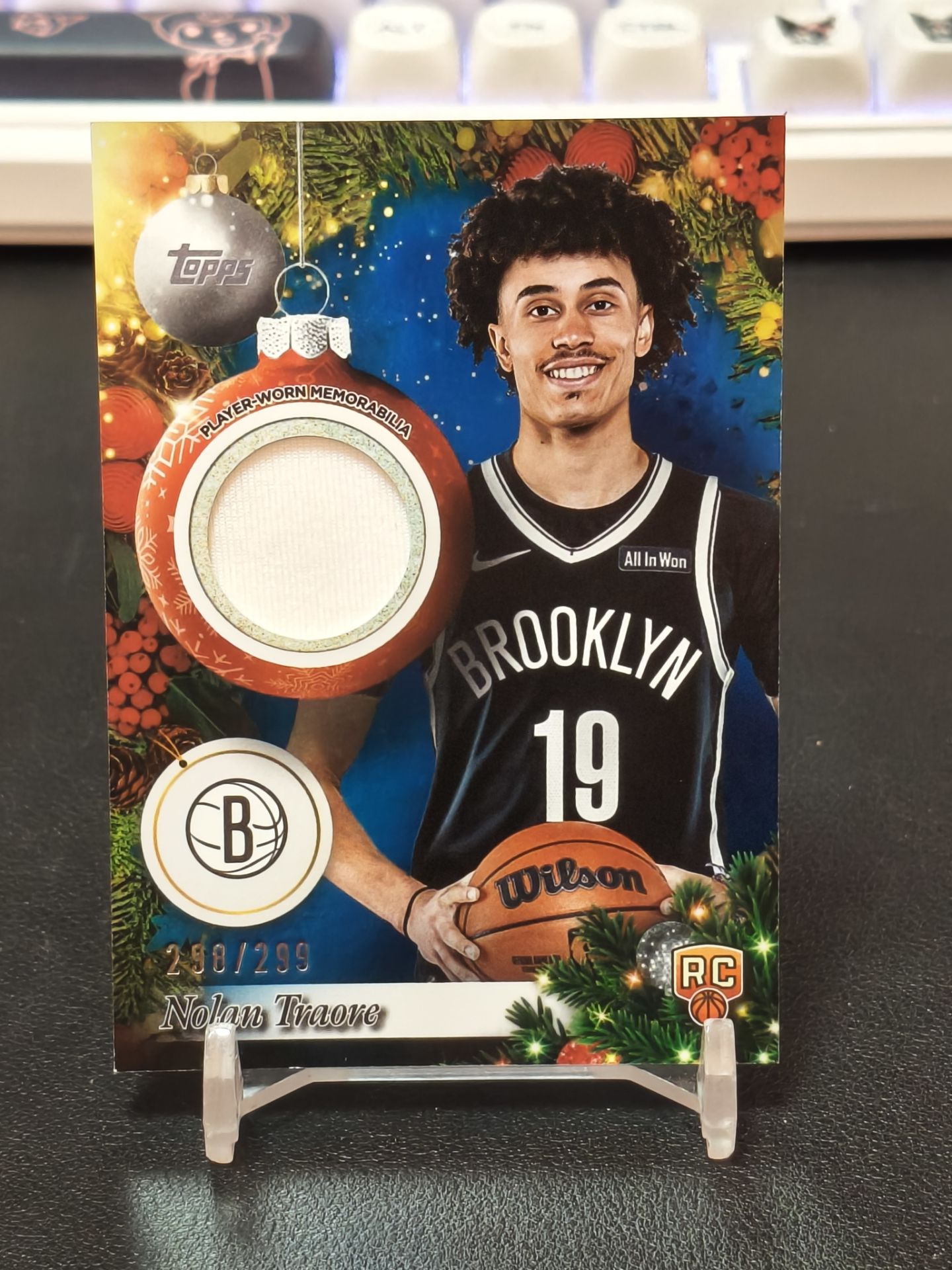 【浩行拍卖 截标预付82%】2025 topps holiday nolan traore 假日盒 圣诞节 篮网 诺兰 特拉奥雷 RC 新秀 折射 球衣 物料 298/299编 专收必备 瑕疵看图「ROY123」1105G02兿