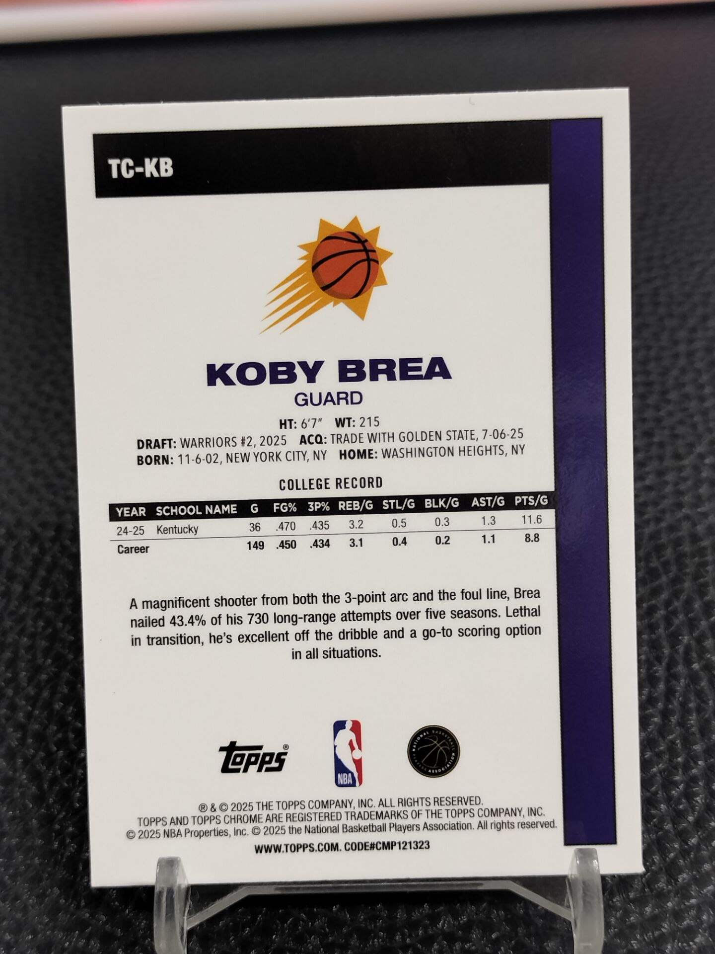 【浩行拍卖 截标预付82%】2025 topps chrome koby brea 太阳 科比 布雷亚 新秀 rc 银mojo折 折射 45周年 复古特卡 专收必备 瑕疵看图「城府957」1105h01飛