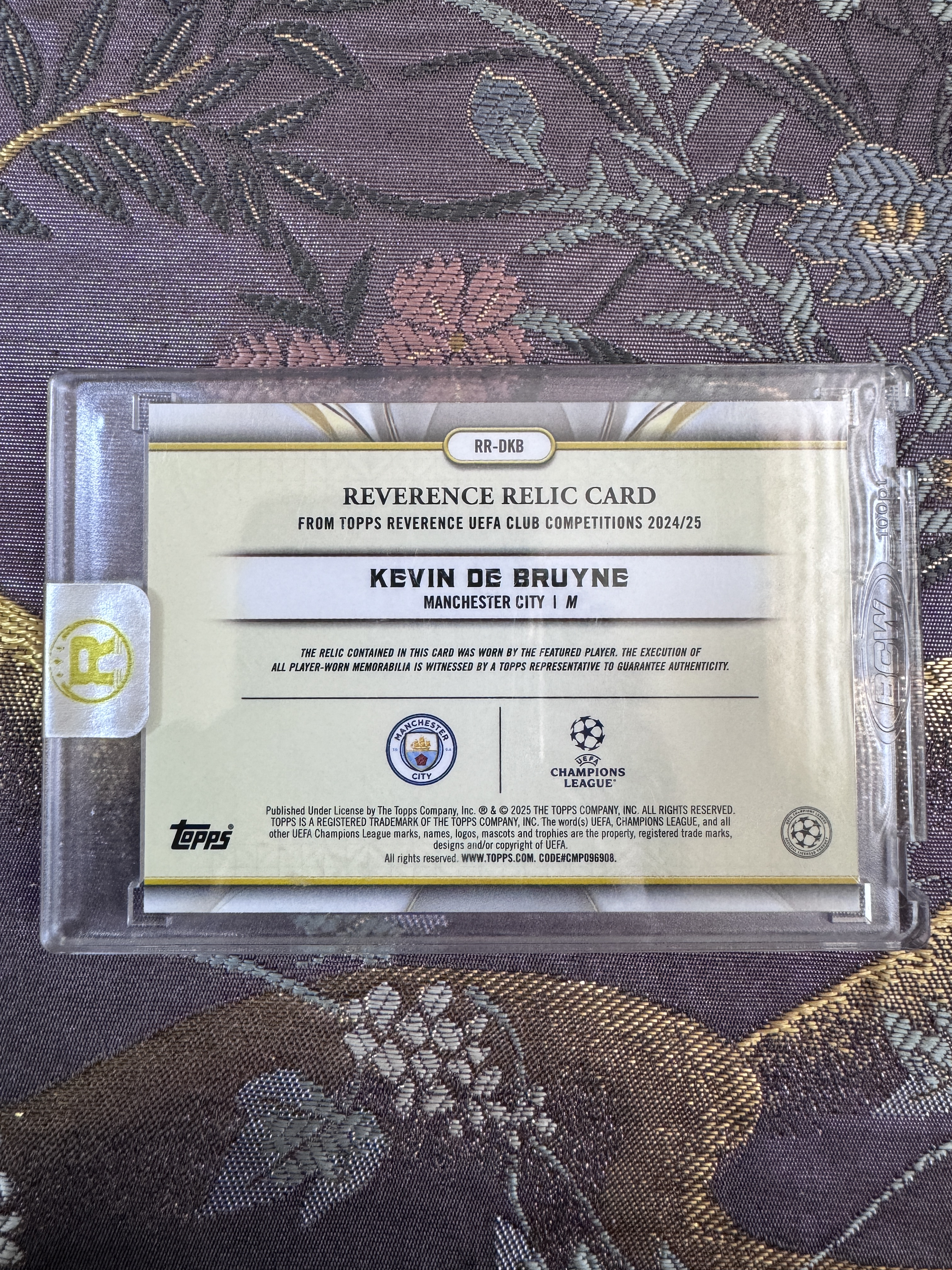 2025 Topps Reverence Kevin De Bruyne 欧冠 元年 尊耀 曼城 比利时 超级巨星 凯文 德布劳内 大窗物料切割 球衣patch 08/99编 稀有 原封砖 实卡精美