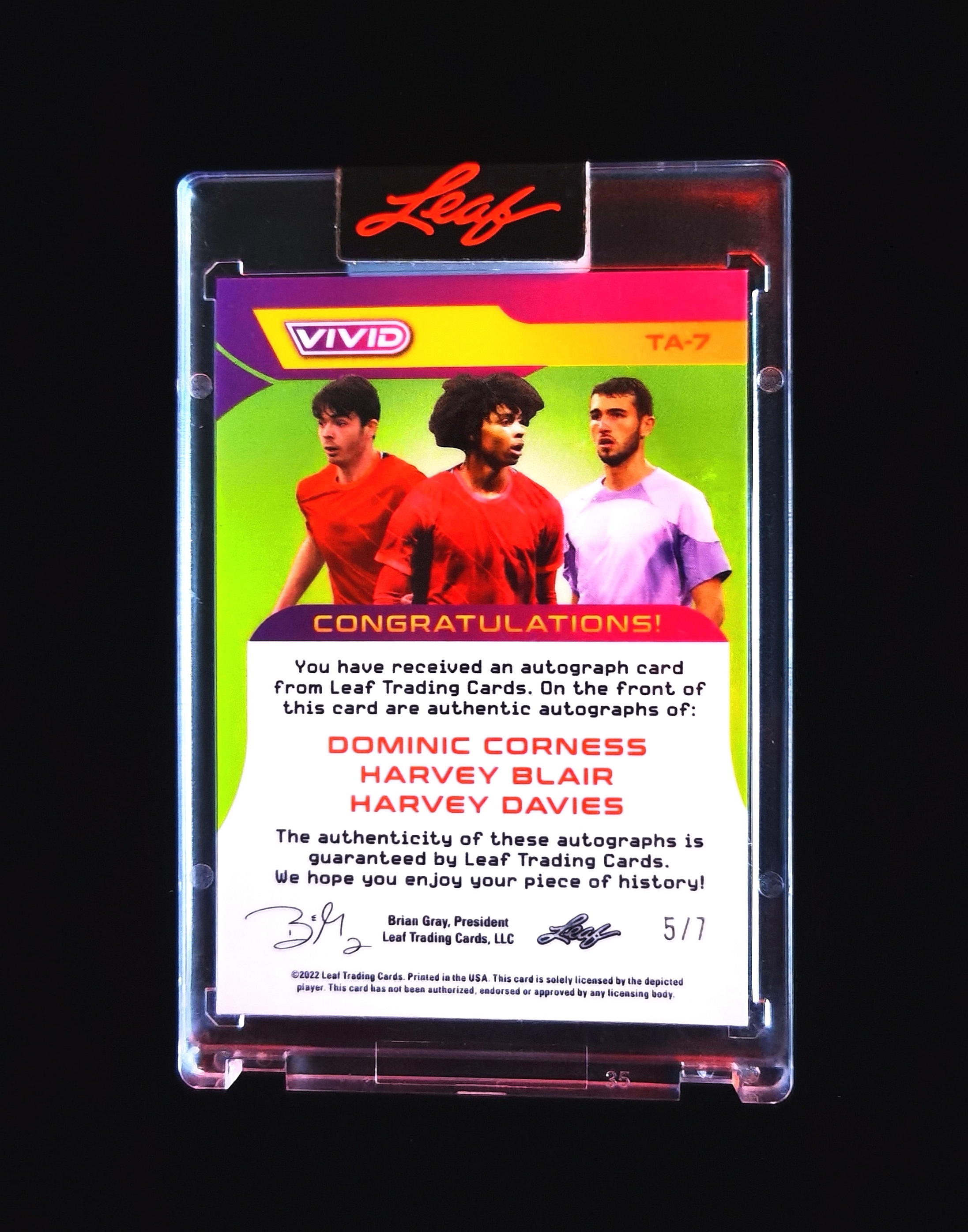 2022 Leaf Vivid Harvey Blair 英格兰 科尔内斯 布莱尔 戴维斯 05/07编 签字 三人 三签 超低编 完美签 实卡精美 专收必备 原封砖【彦5】