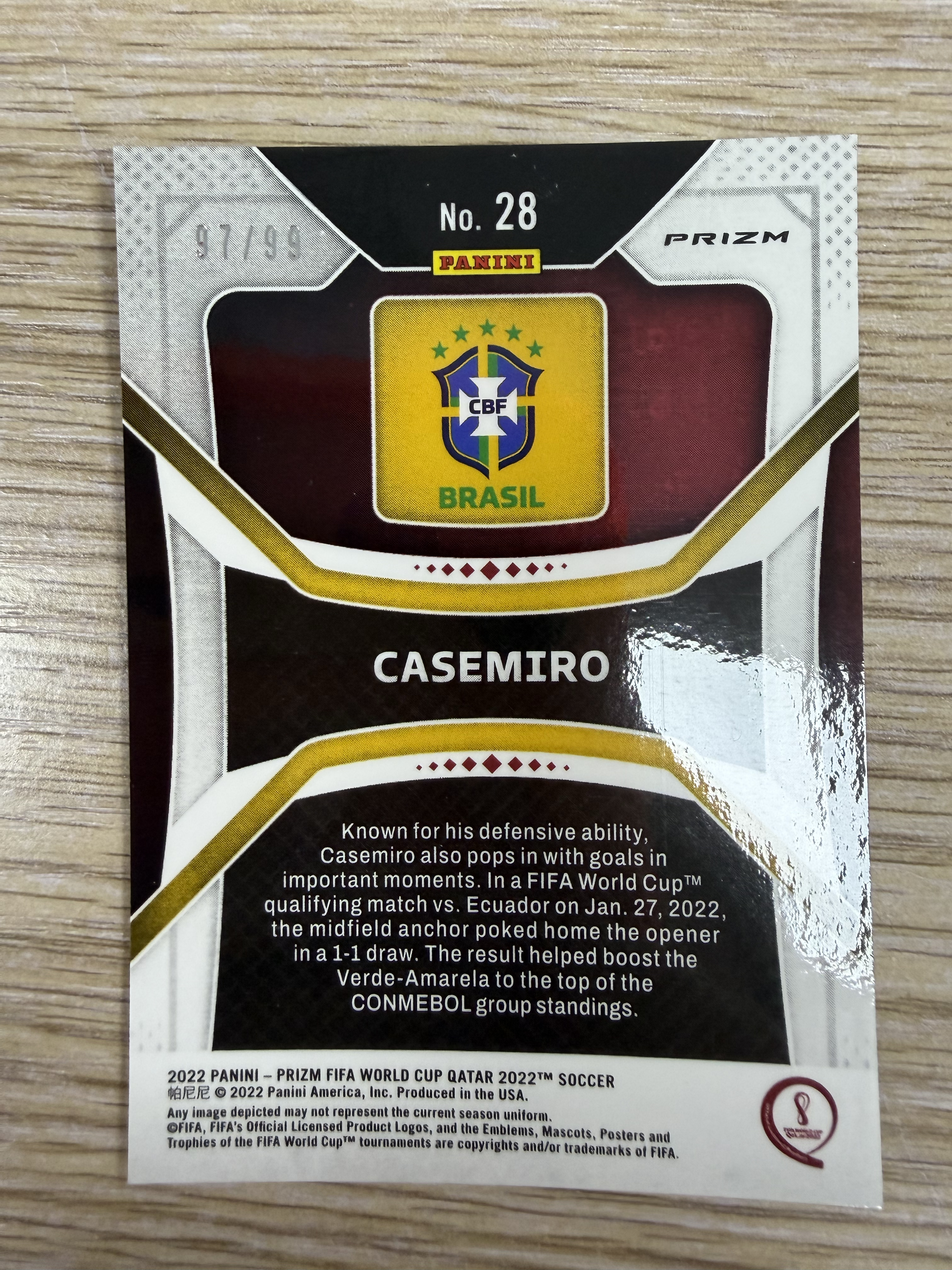2022 Panini Prizm Fifa World Cup Casemiro 卡塔尔世界杯PZ 卡塞米罗 胖虎 巴西 典礼中场 曼联 重返国家队 红Mojo折 97/99编