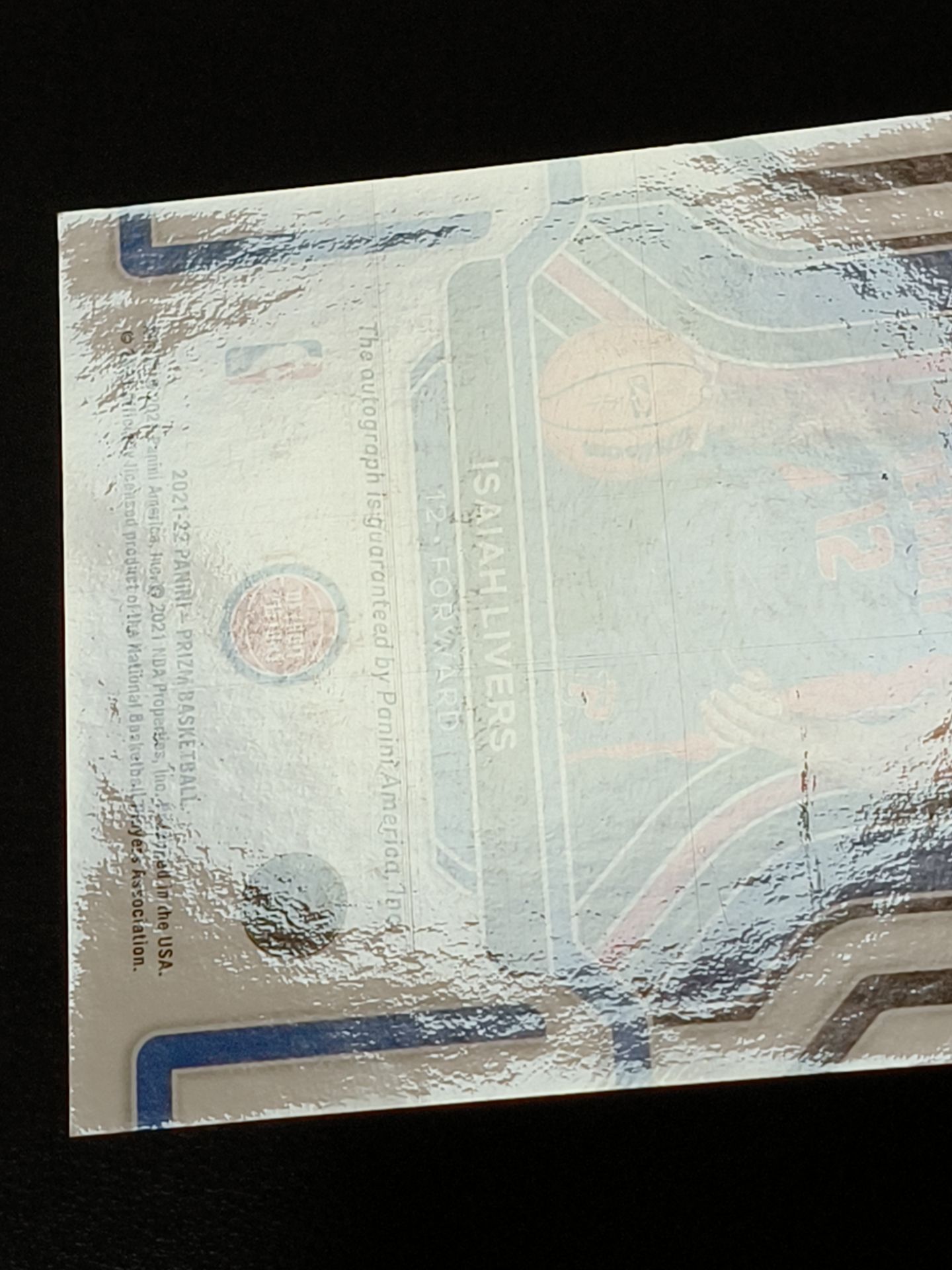 【浩行拍卖 截标预付82%】2021-22 panini prizm isaiah livers 活塞 以赛亚 利弗斯 新秀 rc 签字 专收必备 瑕疵看图「巡星」1105F02祺兿