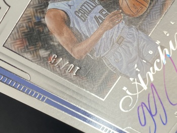 【关于卡品】:①出价即认同品相详情及拍卖规则,概不退换;②签字墨迹及卡片品相均如图,请看清楚细节图再拍,图片很清楚,需要细节图请提前咨询站内信或VX;③折射系列经常会有一道横线印刷线是出品印刷问题,不属于卡品残次范畴。国宝、IMM、NOIR等厚卡有轻微白边白角属于正常现象!镜面系列等卡面轻印划痕、印刷自带痕迹或覆膜不平起泡等卡片自身问题均为通行品。老卡有白边白角属于正常卡品。评级卡砖上的划痕和破损以及评级砖内的卡有卡品问题一律不属于品相问题。PZ、OP等各种折射系列表面的轻微划痕为正常卡品。关于以上卡品问题请确认无误再出价,介意者勿拍,要评级追求金标和10分者请直接购买评级卡。④快递过程中如出现包装破损、暴力变形、遗失等问题,请自行联系顺丰客服处理理赔,提供购买订单记录和物流记录给顺丰即可,如有高价卡有保价需求,请主动联系我们!⑤所有多卡打包lots标均不保卡品,品控和艺术家勿扰,感谢理解!【任何疑问请添加咨询VX:cglgzh01】