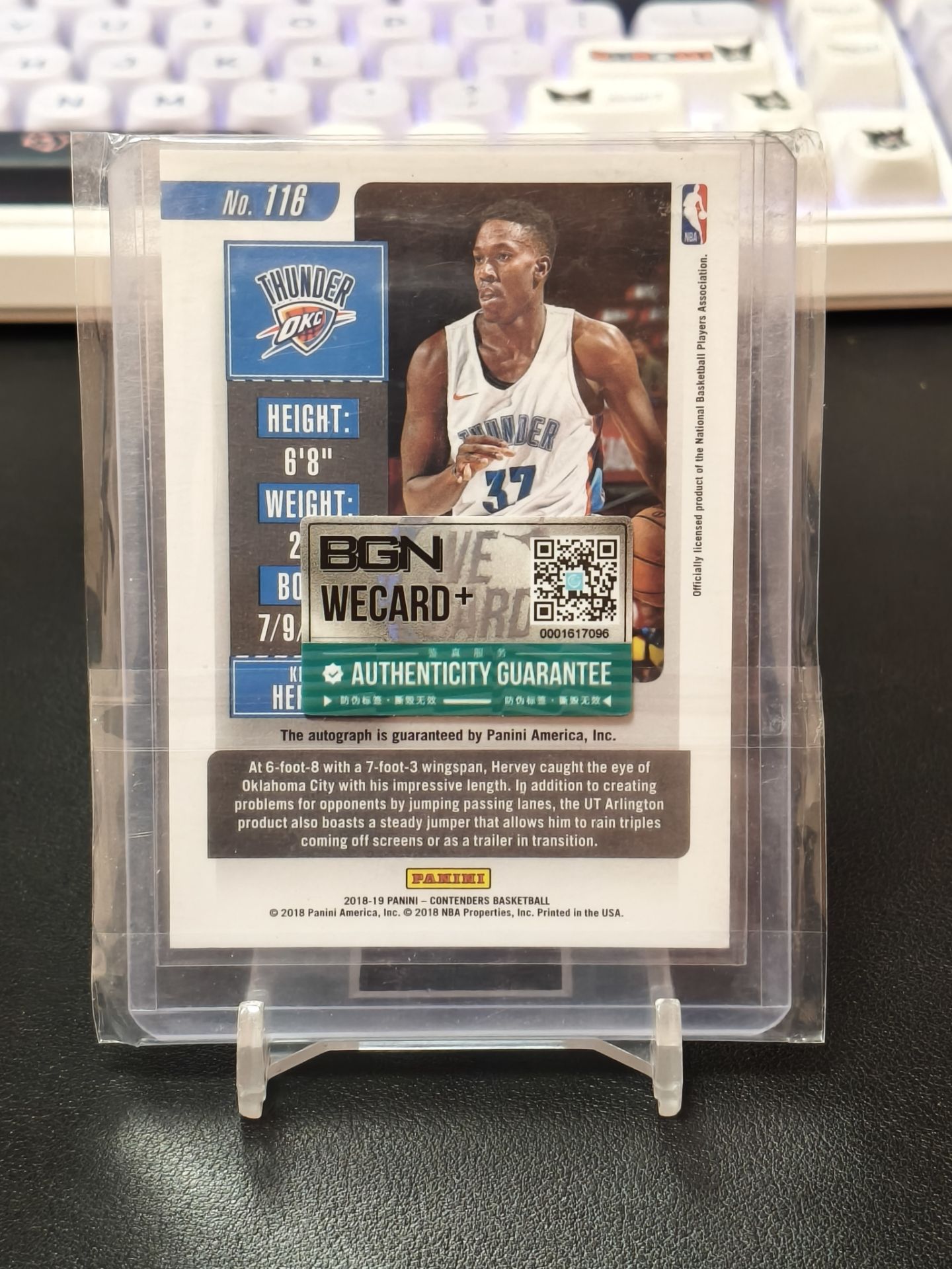 【浩行拍卖 截标预付82%】2018-19 panini Contenders kevin hervey 球票 雷霆 凯文 赫维 新秀 rc 银折 折射 签字 卡签 2/25编 专收必备「巡星」1105F02祺兿