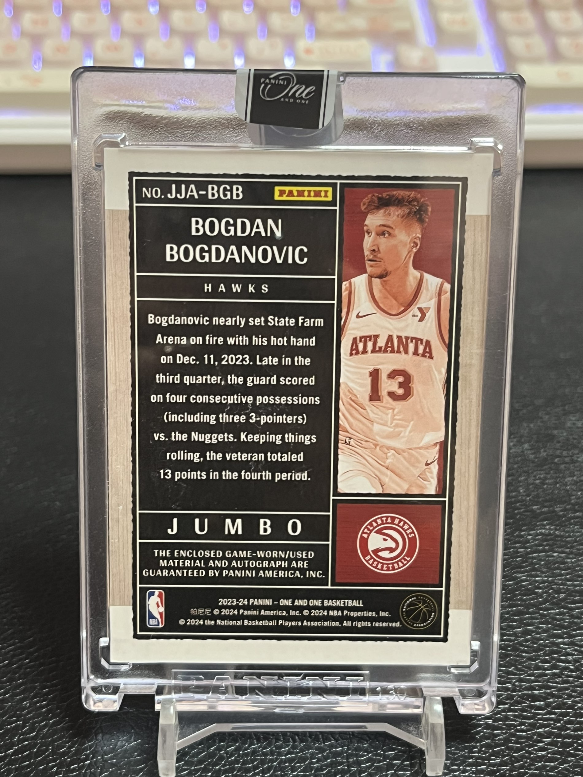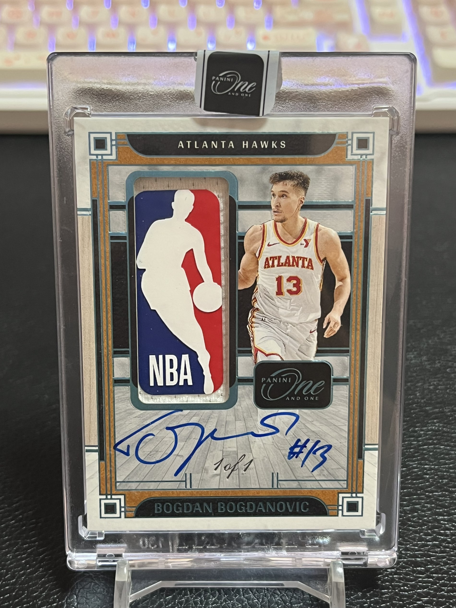 【浩行拍卖】2023-24 panini one and one bogdan bogdanovic 老鹰 博格达诺维奇 湖水蓝平行 签字 卡签 球衣 物料 patch logoman 1of1 1/1编 仅此一张「称惟」1105D09祺