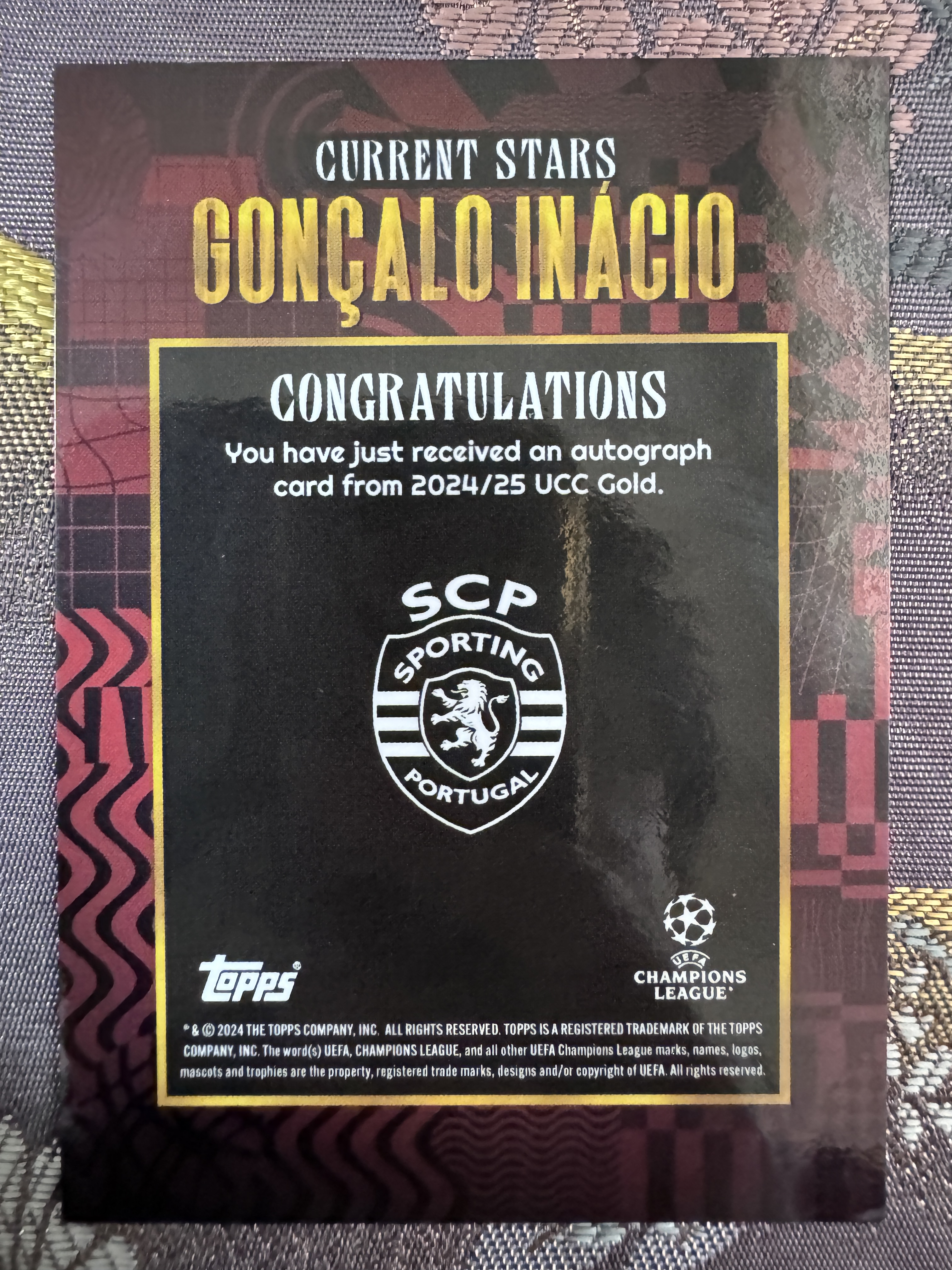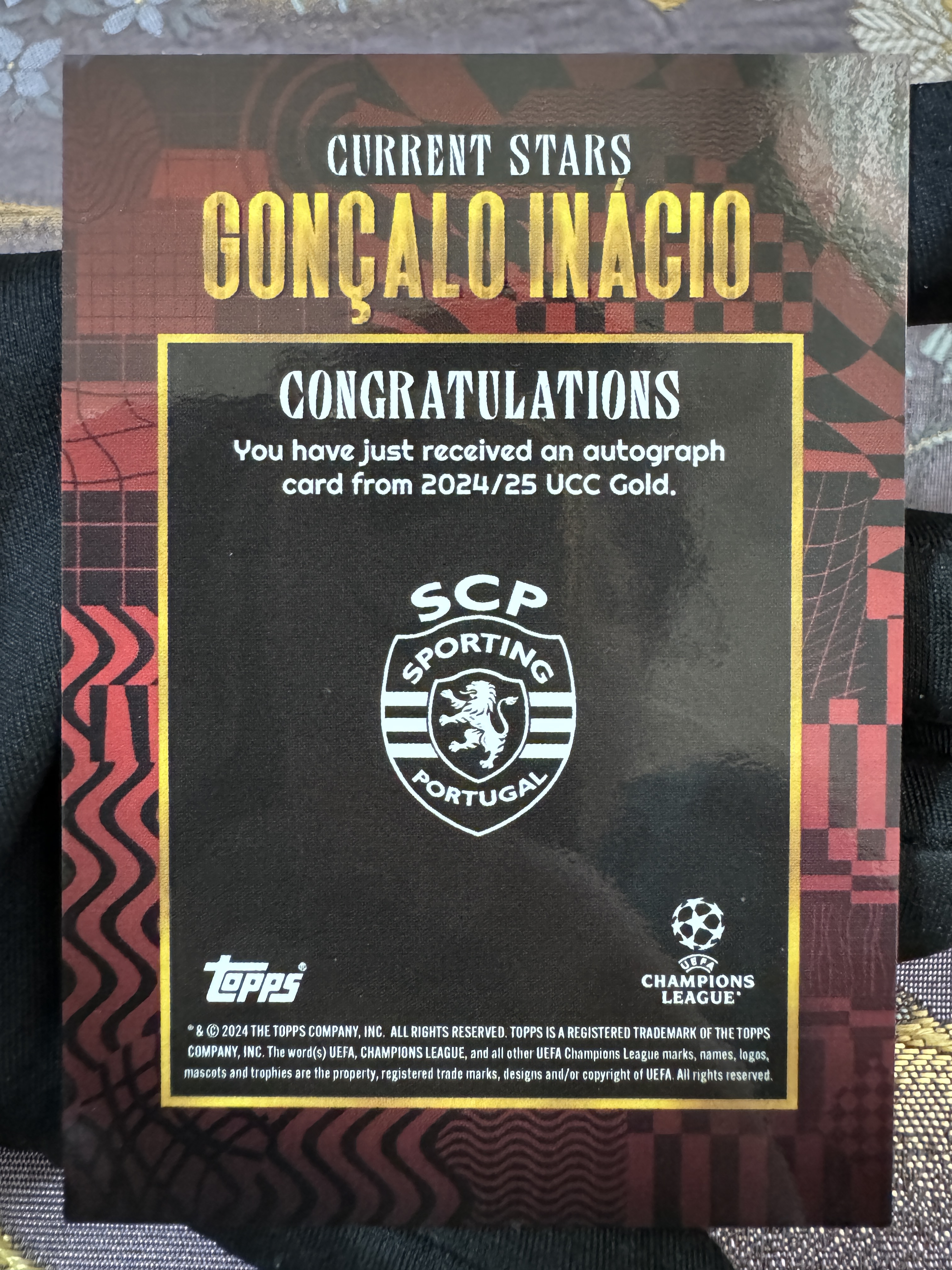 2024 Topps GOLD Gonçalo Inácio 欧冠 Gold 黄金盒 葡萄牙体育 超级小妖 贡萨洛 伊纳西奥 伊格纳西奥 投资大热 红折签 09/10编 签字 稀有 完美墨迹 实卡精美