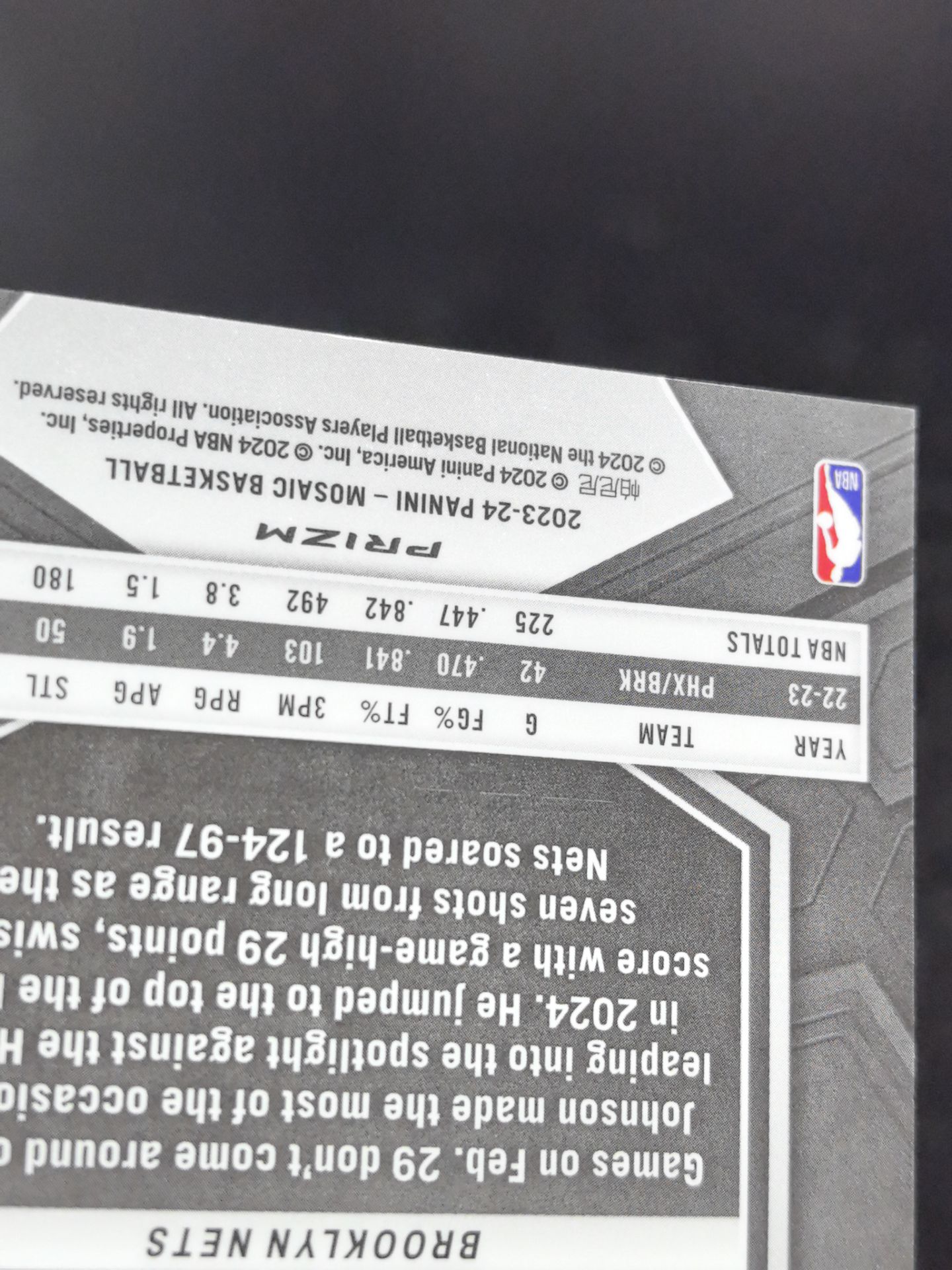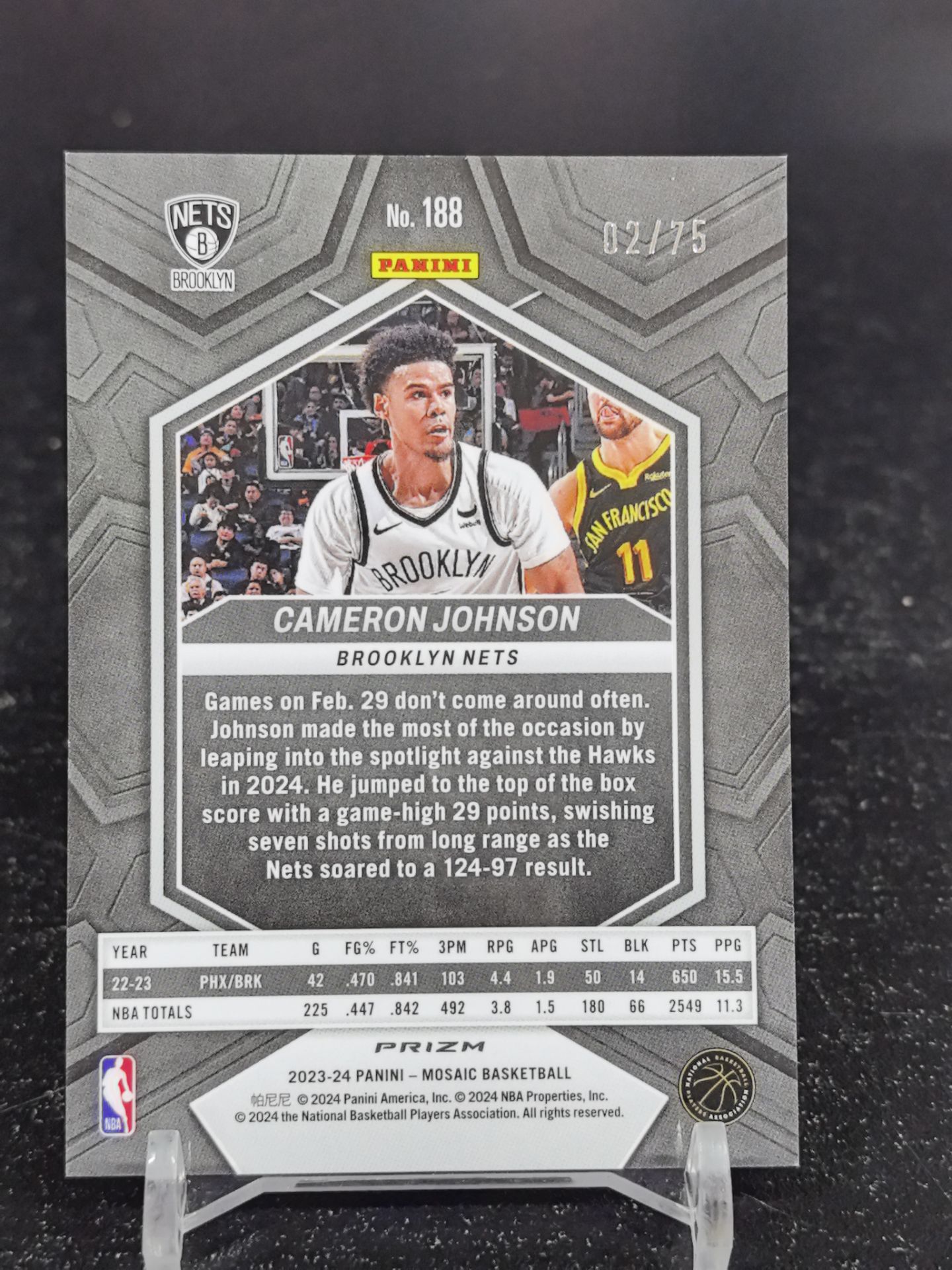 【浩行拍卖 截标预付82%】2023-24 PANINI MOSAIC cameron johnson 马赛克 篮网 卡梅隆 卡梅伦 约翰逊 红圈圈折 折射 2/75编 专收必备 瑕疵看图「城府957」1104N02紋