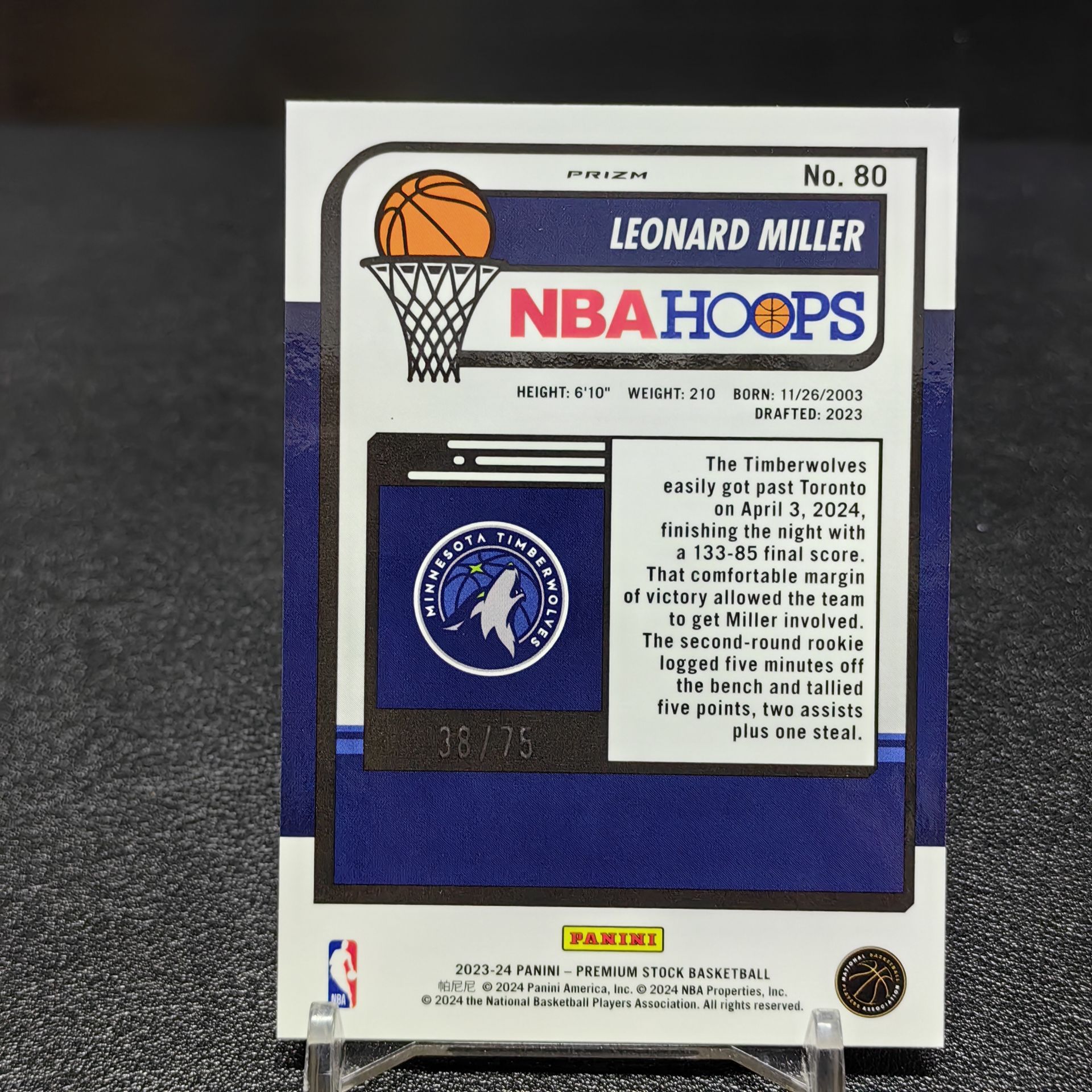 【浩行拍卖 截标预付82%】2023-24 Panini hoops leonard miller 森林狼 伦纳德 米勒 新秀 RC 白变形虫折 折射 38/75编 专收必备 瑕疵看图「倾笑」1105C02龘