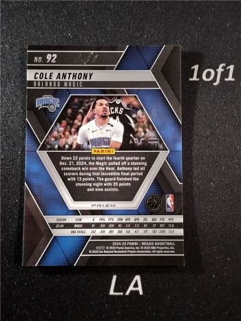 因卡淘系统不支持跨号合并,所以分开发货计算邮费,寄售代卖咨询:laauction。卡品如图,请仔细看图,如果无图片特殊展示瑕疵均为通行品相,一般prizm optic 等系列薄卡的小划痕,国宝IMM等系列厚卡的小白边小白角,都属于通行品相。艺术家 品控勿扰。中标后请等我们合并订单再点确认付款。付款时卡淘留言说明累计或邮寄,避免纠纷只发卡淘默认地址(我们会按照留言的先后顺序处理发货,请不要反复留言以免耽误给您回复)为了方便结算和卡片的累计查找,我们只合并当天的订单。邮费-顺丰(默认陆运):北京13元,非偏远外地18元,新疆西藏等偏远只发到付!超重只发到付!1000元以上的订单,建议买家自行保价,或用顺丰到付,所有快递未经保价,运输途中的损坏和丢失请于快递联系解决。(本店不支持任何普快发货,破损及丢失率太高)介意勿拍!中标可累计,累计时间2个月,每标累计金额不能超过500元,超过累计时间出现丢失或品相问题的,卡片问题由买家自行承担。累计的卡片请先付清卡款,然后卡淘上与我们联系操作,请于截标后3天转好,截标后5天未确认收到付款,一律卡淘投诉处理。