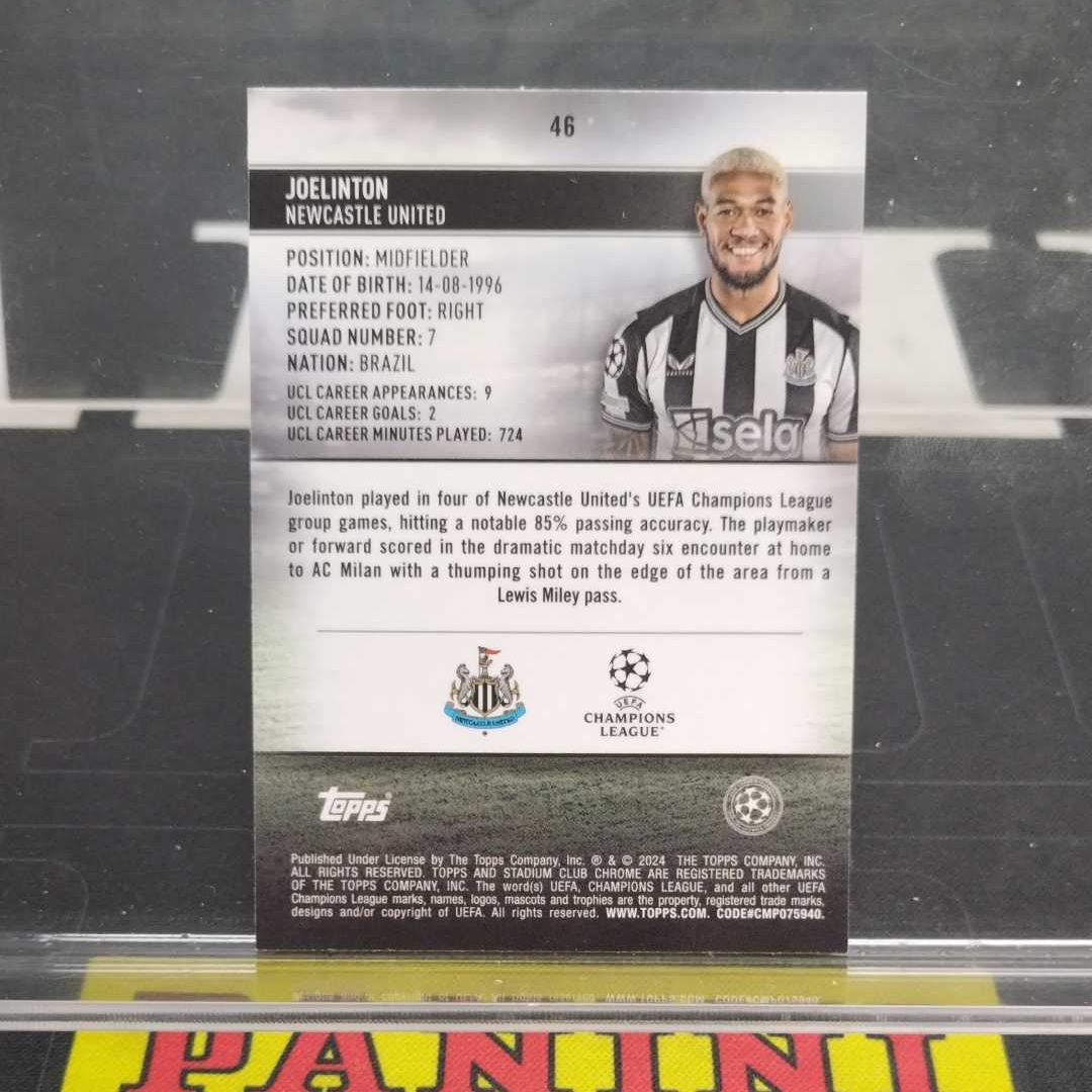 2024 Topps Stadium Club Chrome Joelinton 【伯纳乌代卖】欧冠 竞技场 乔林顿 99/125 带编 绿闪电折 折射 特卡 英超 纽卡斯尔 微瑕(莫斯哈)